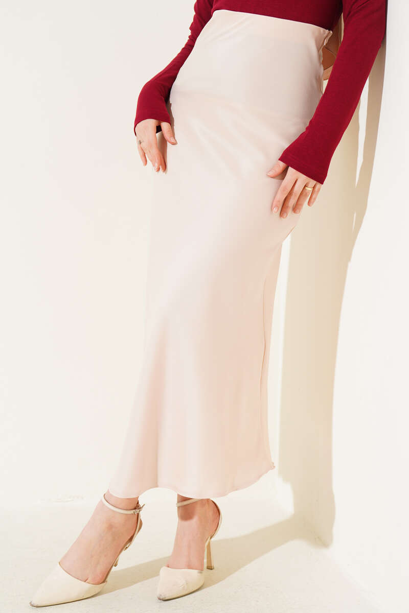 Saten Görünümlü Pileli Etek Bordo