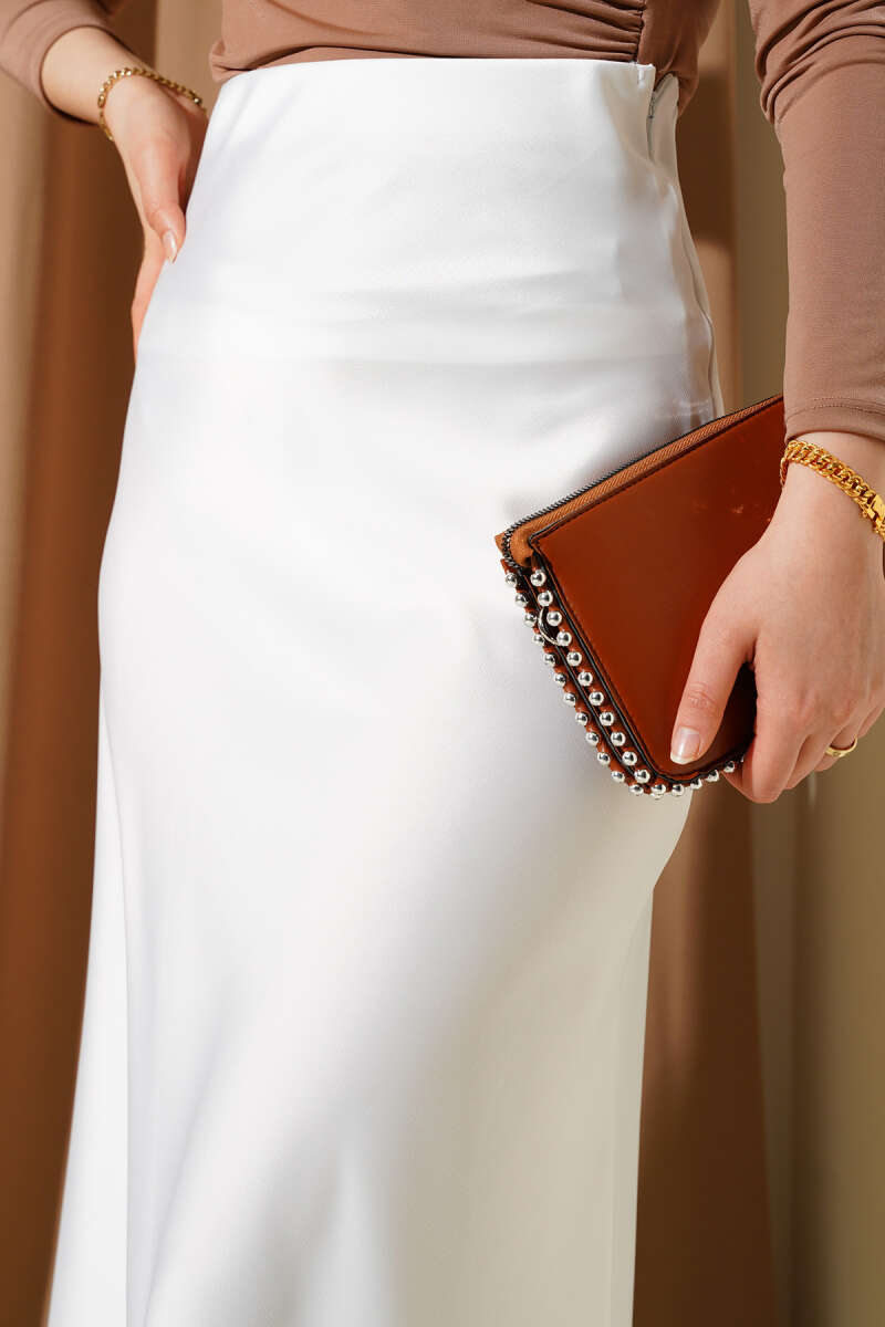 Kemer Aksesuarlı Ekoseli Etek Füme