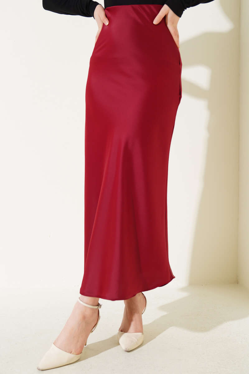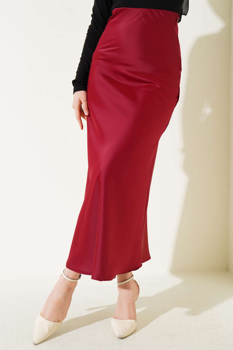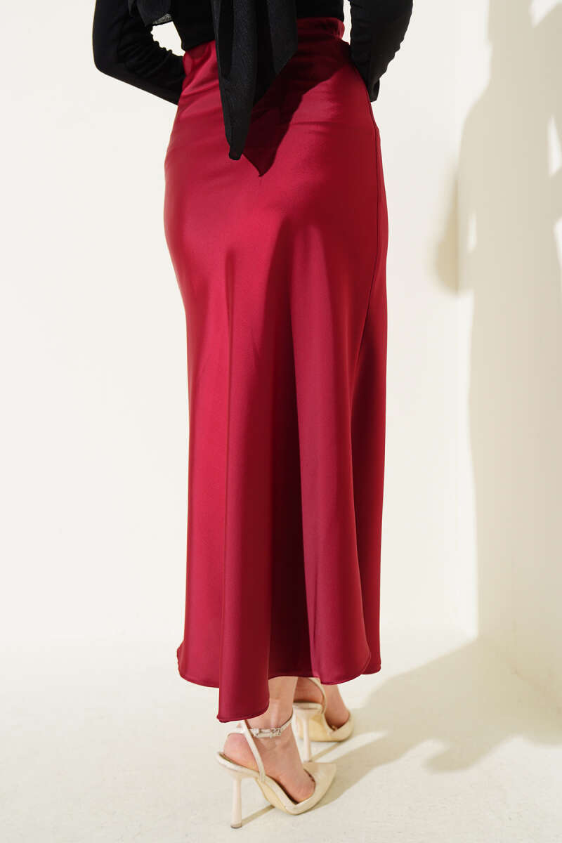 Kemer Aksesuarlı Ekoseli Etek Bordo