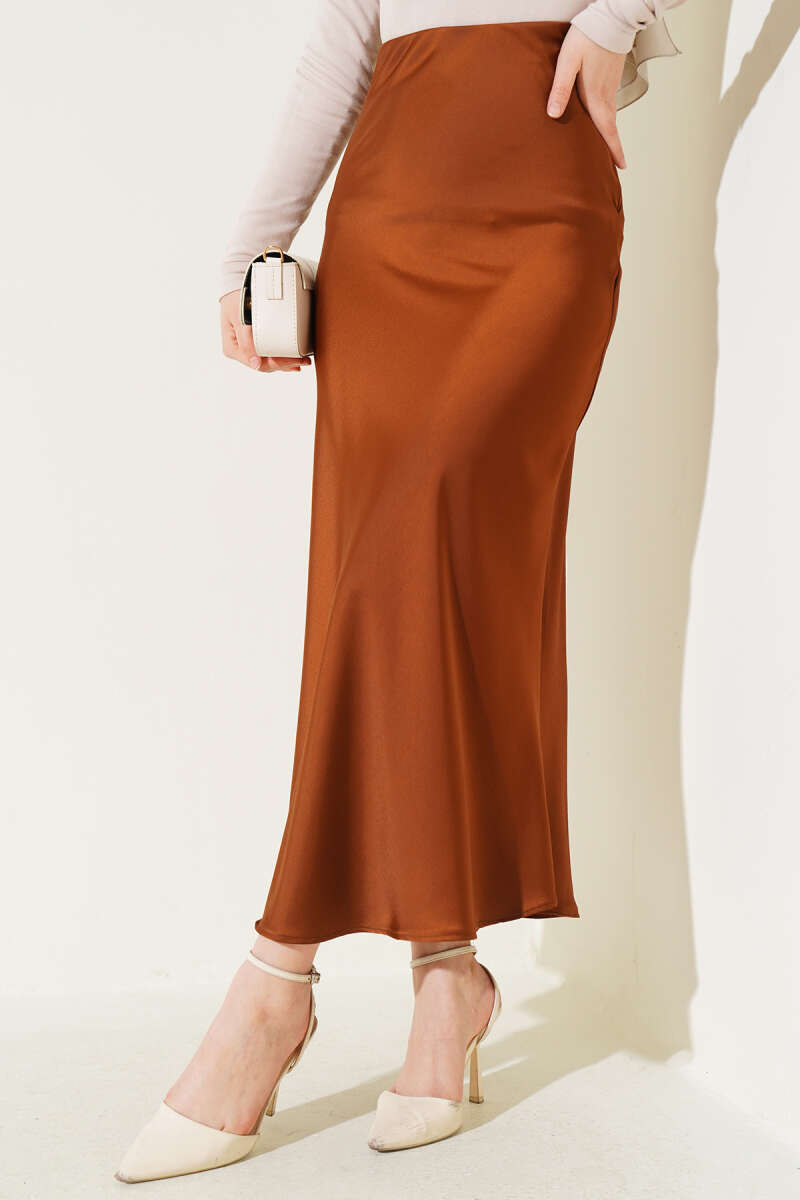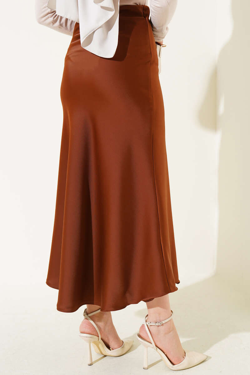 Kemer Aksesuarlı Ekoseli Etek Haki