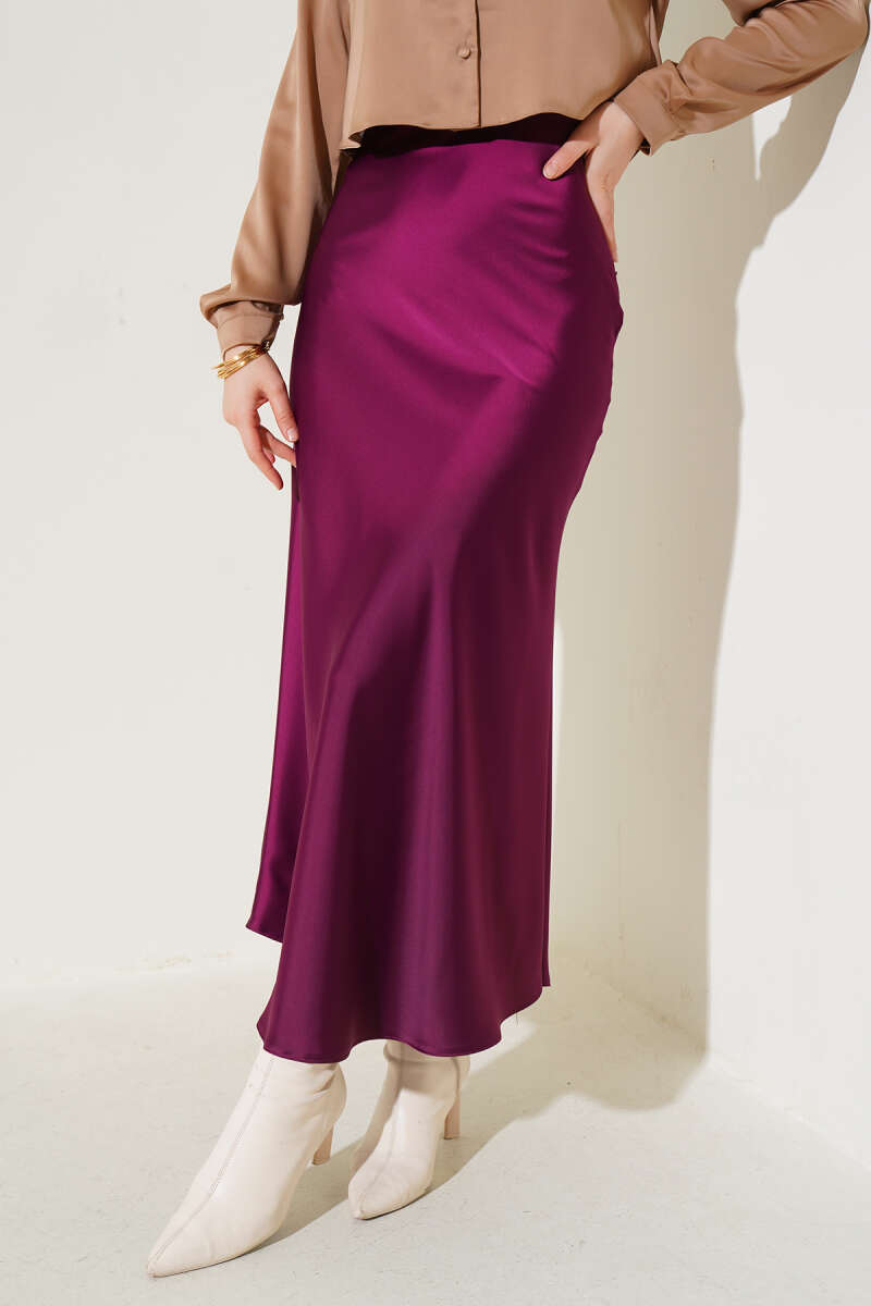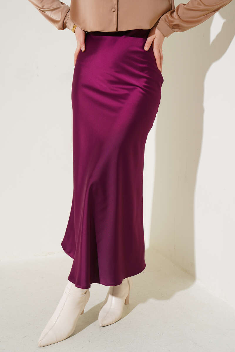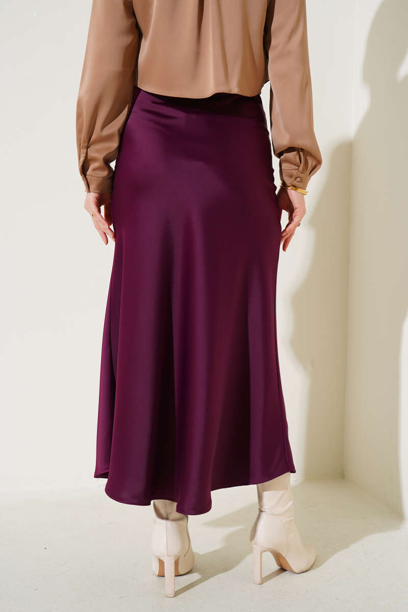 Saten Görünümlü Pileli Etek Bordo
