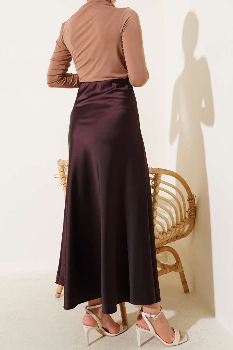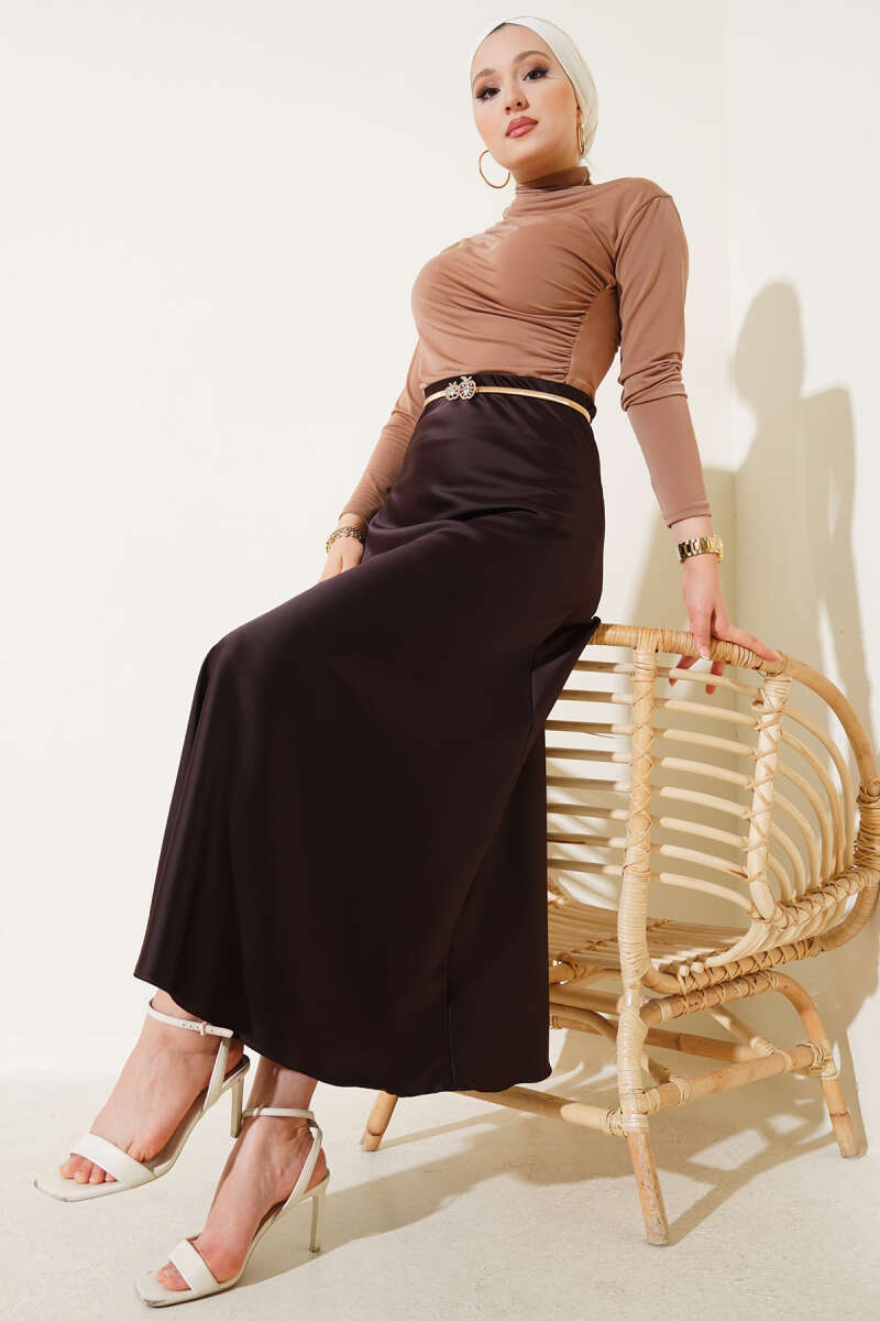 Beli Lastikli Ekoseli Basic Etek Kahve