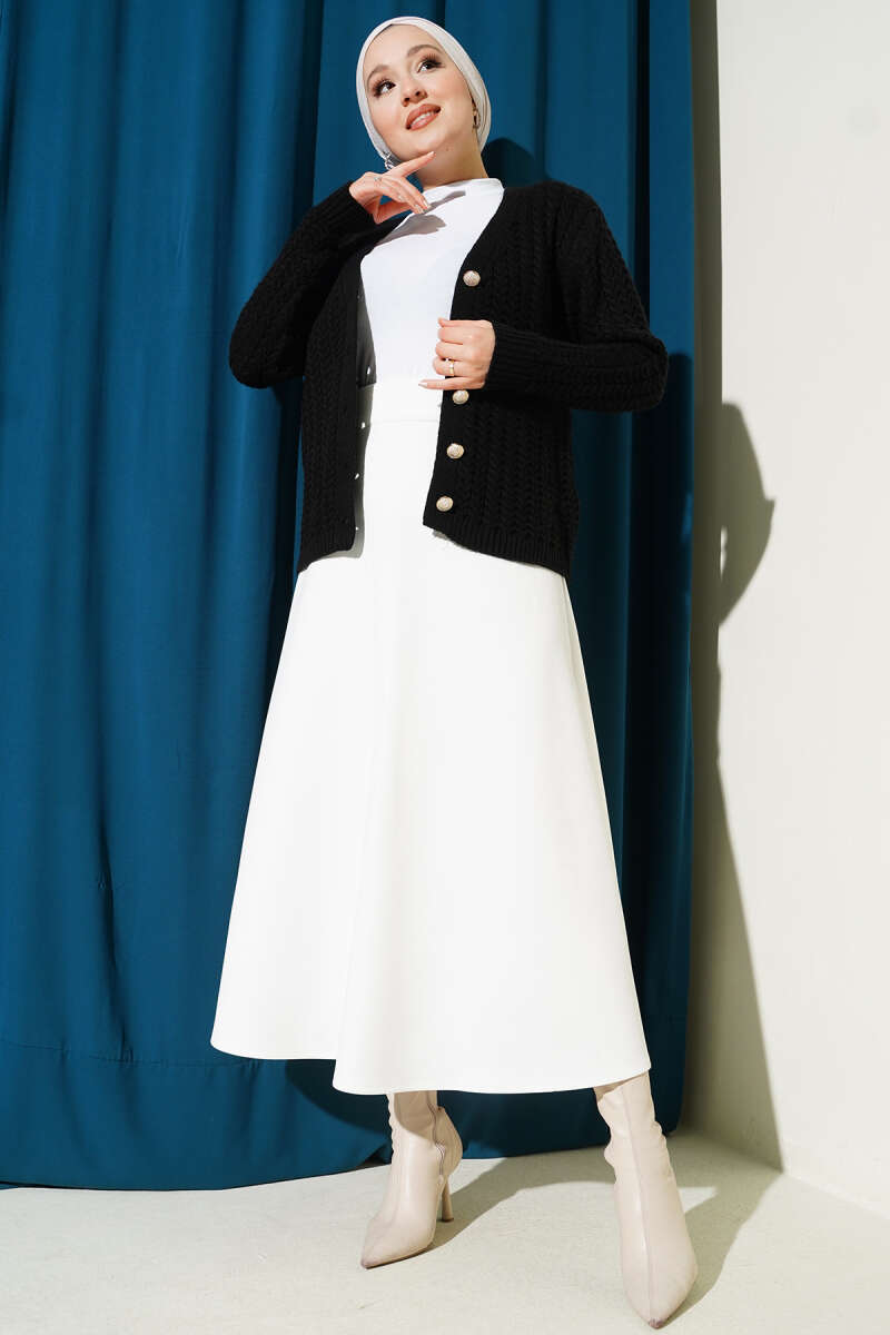 Çiçek Desenli Etekli Triko İkili Takım Siyah