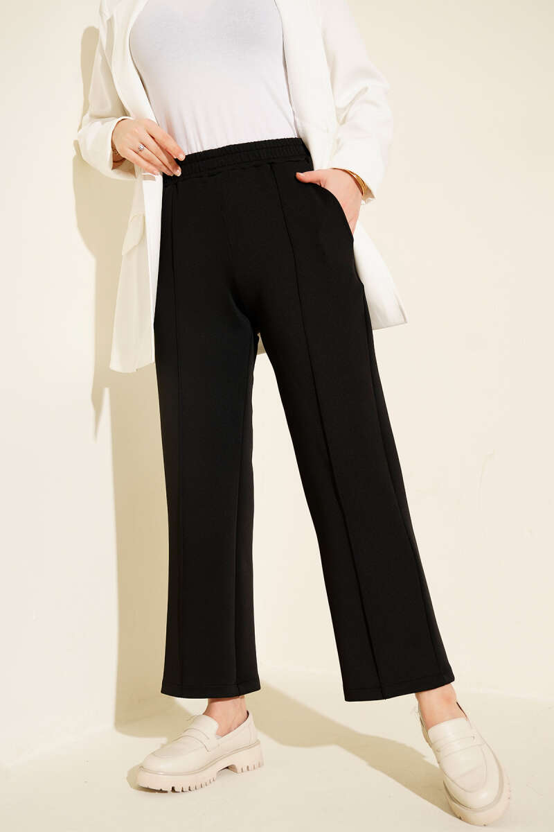 Bel Lastikli Scuba Cepli Pantolon Siyah