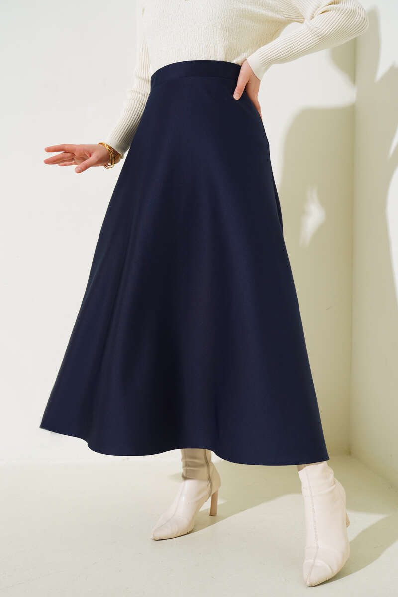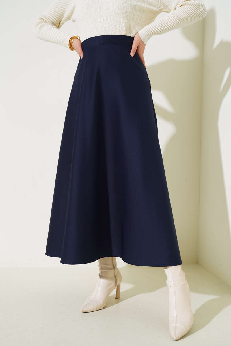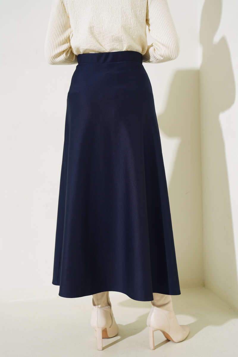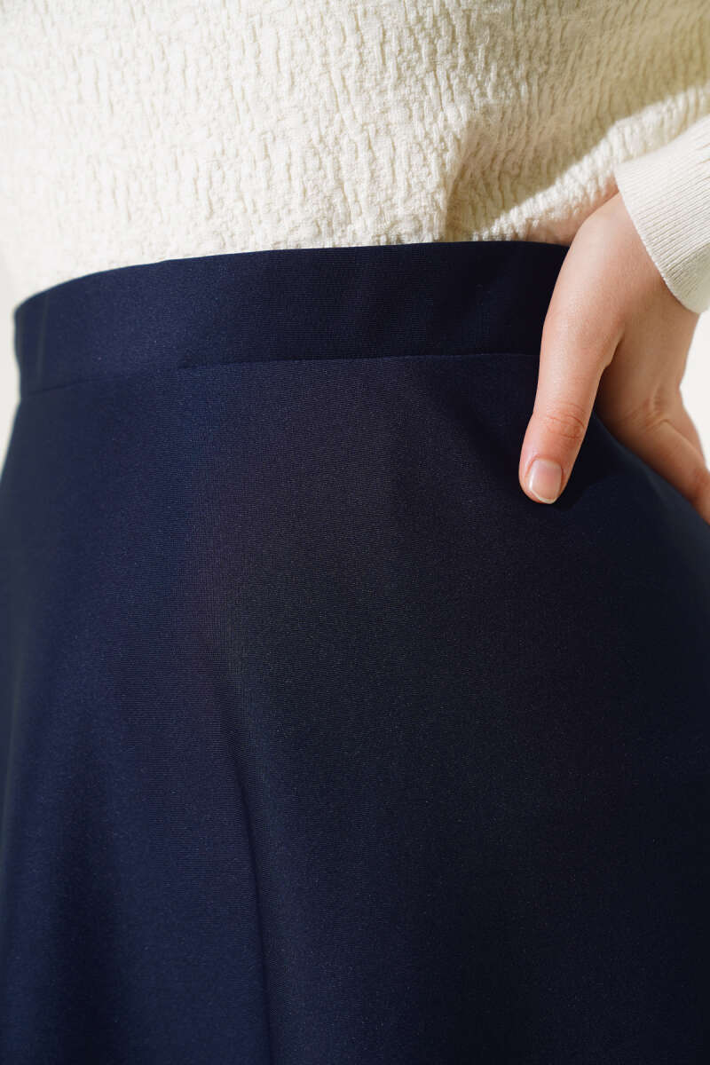 Beli Lastik Detaylı Kloş Scuba Etek Lacivert