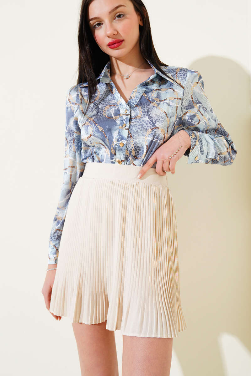 Gömlek Yaka Kuşaklı Kaşe Panço Bej