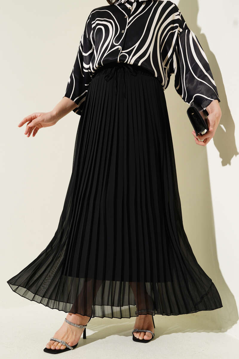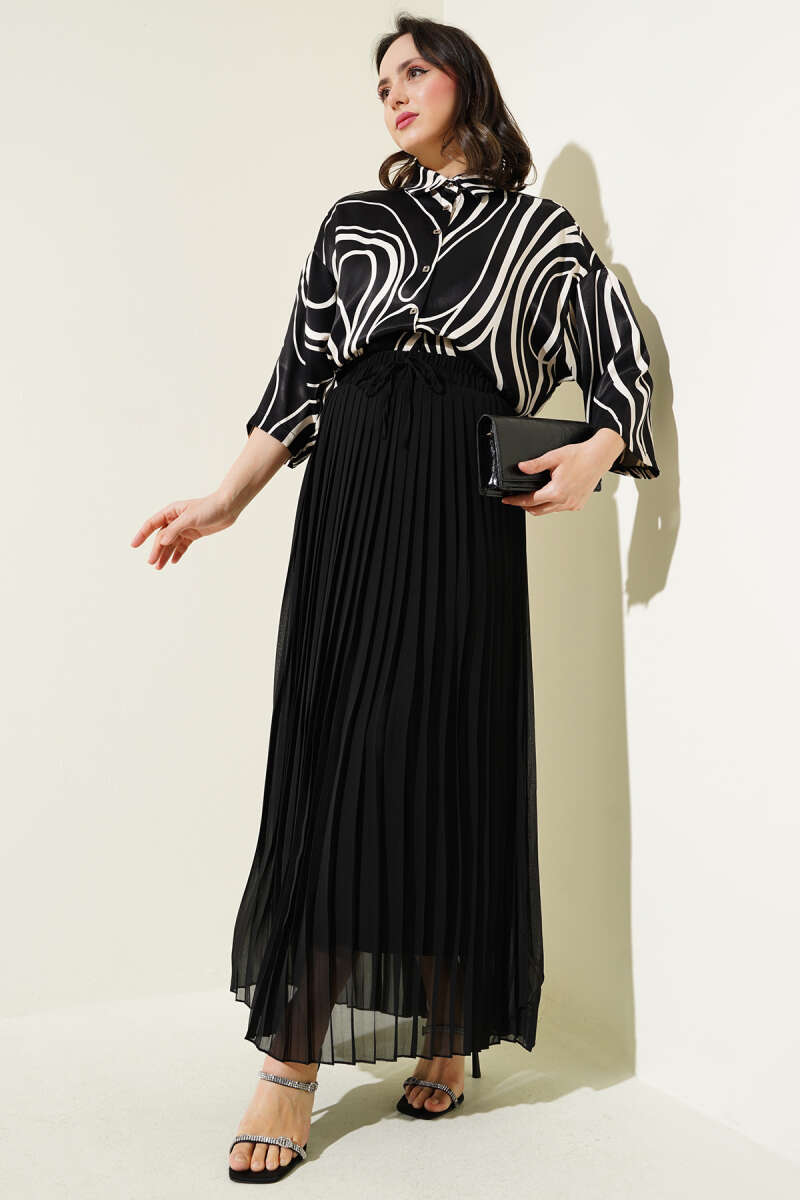 Pötikareli Yanları Büzgü Detay Siyah Tunik