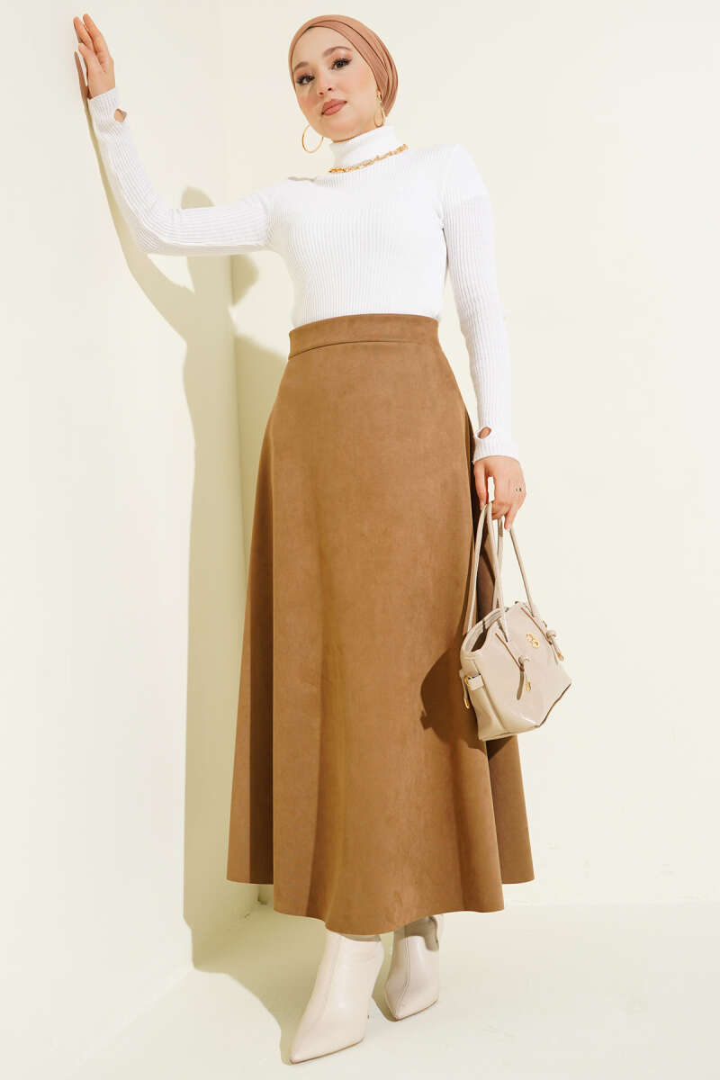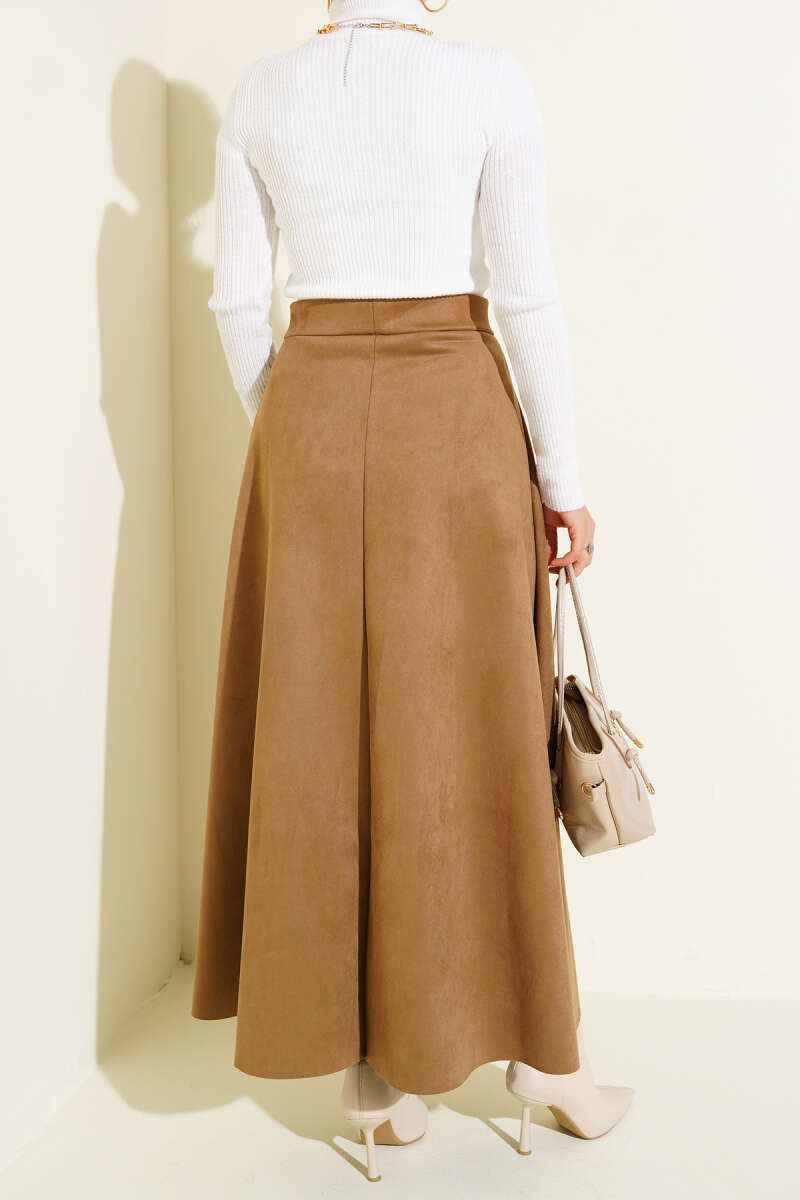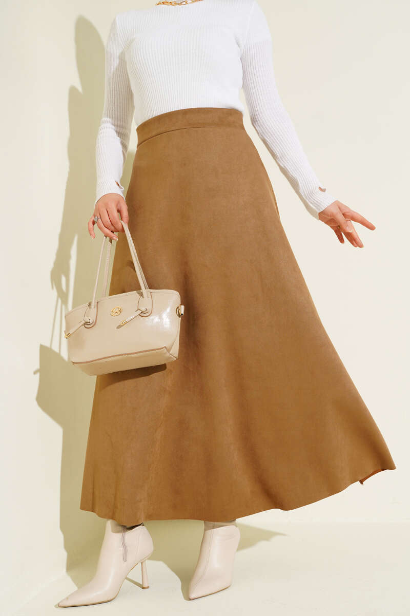 Bel Lastikli Saten Kloş Etek Kayrak Grisi