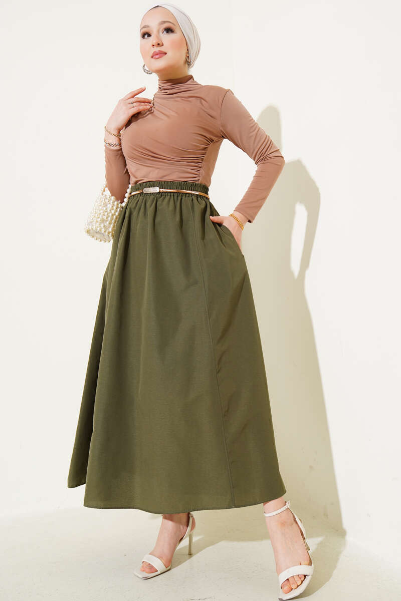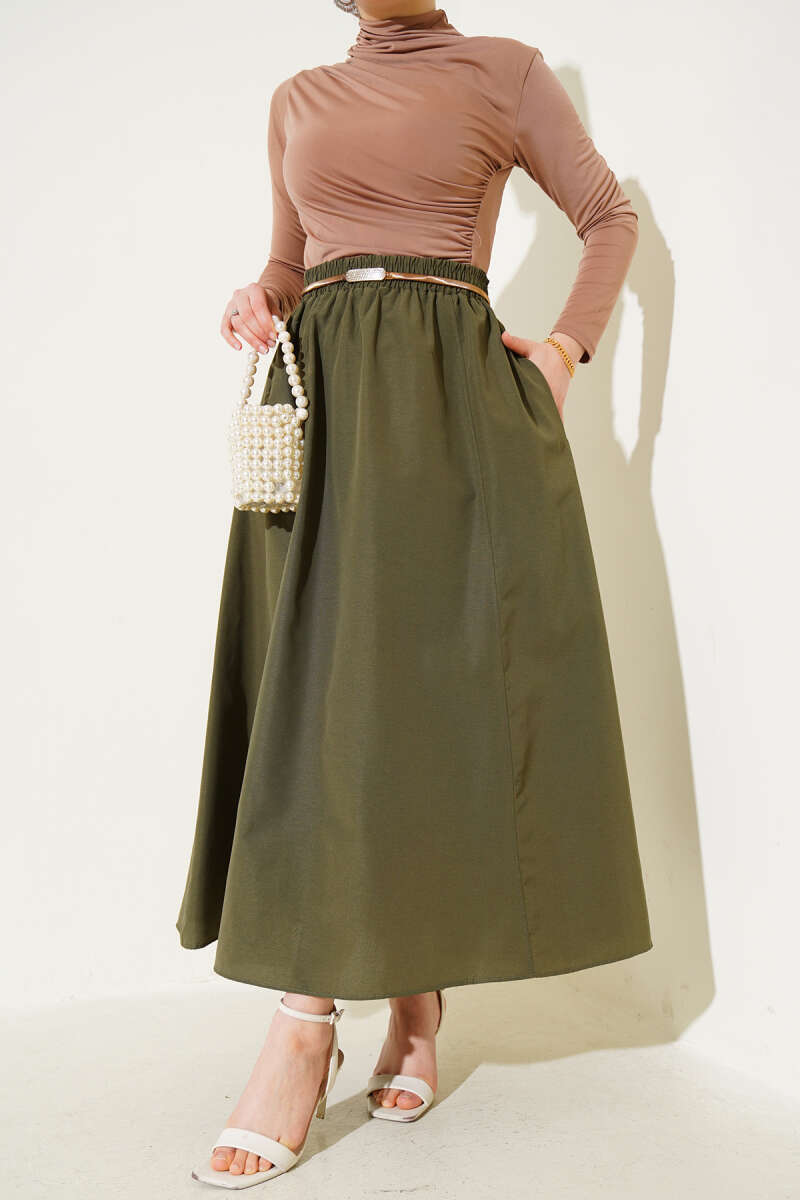 Kemerli Bel Lastikli Tensel Etek Siyah