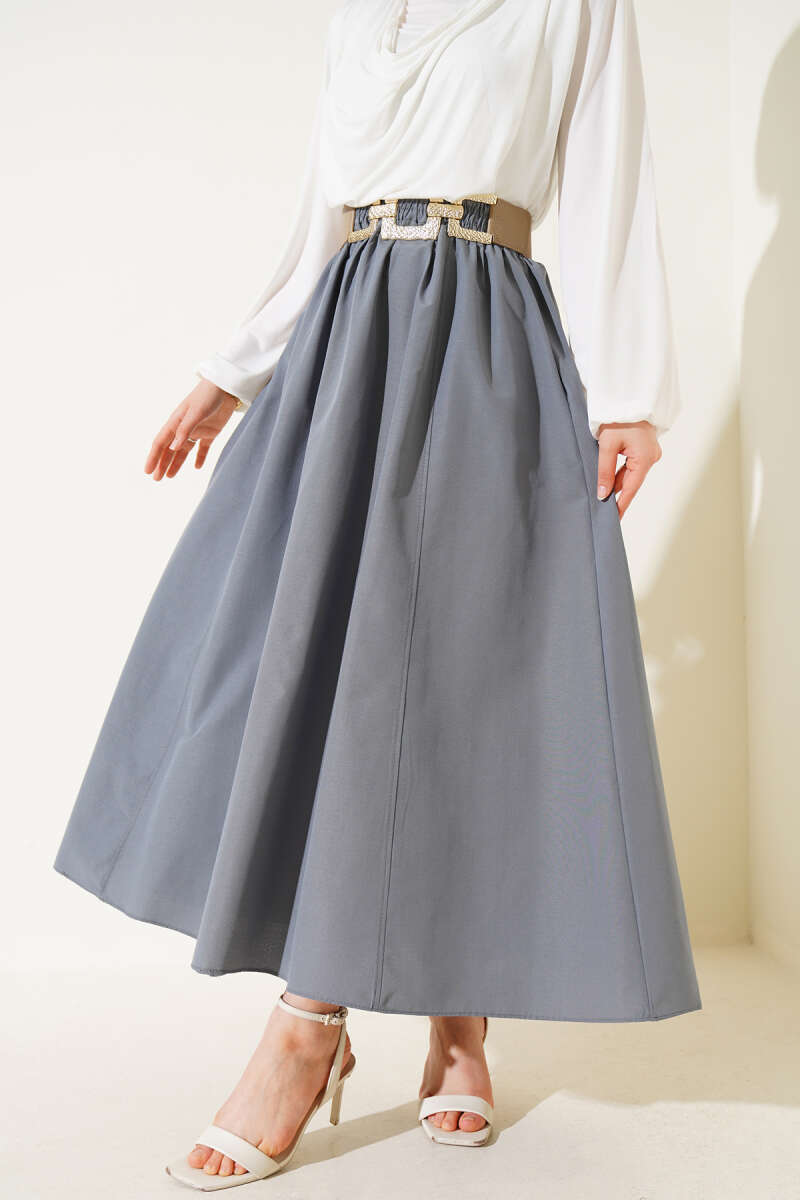 Bel Lastikli Terikoton Etek Kayrak Grisi