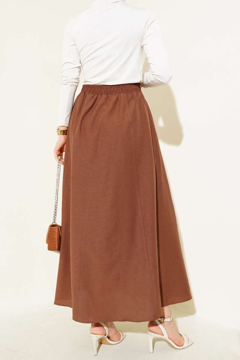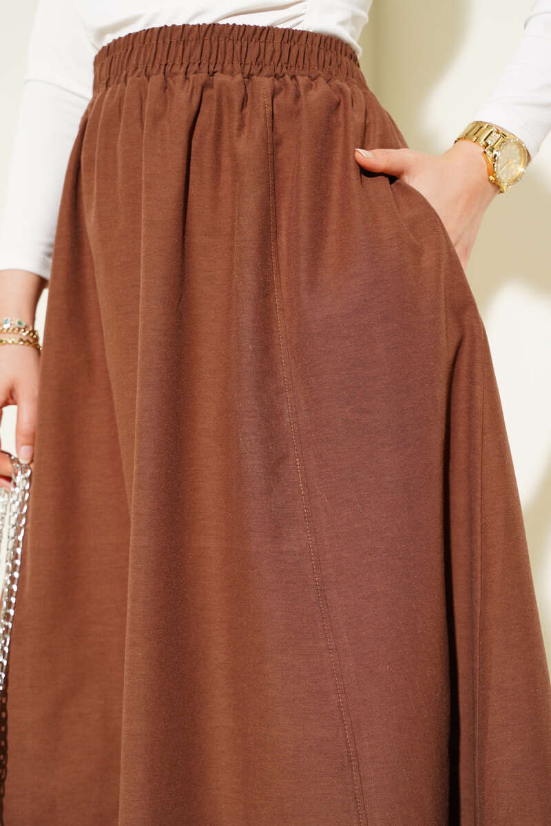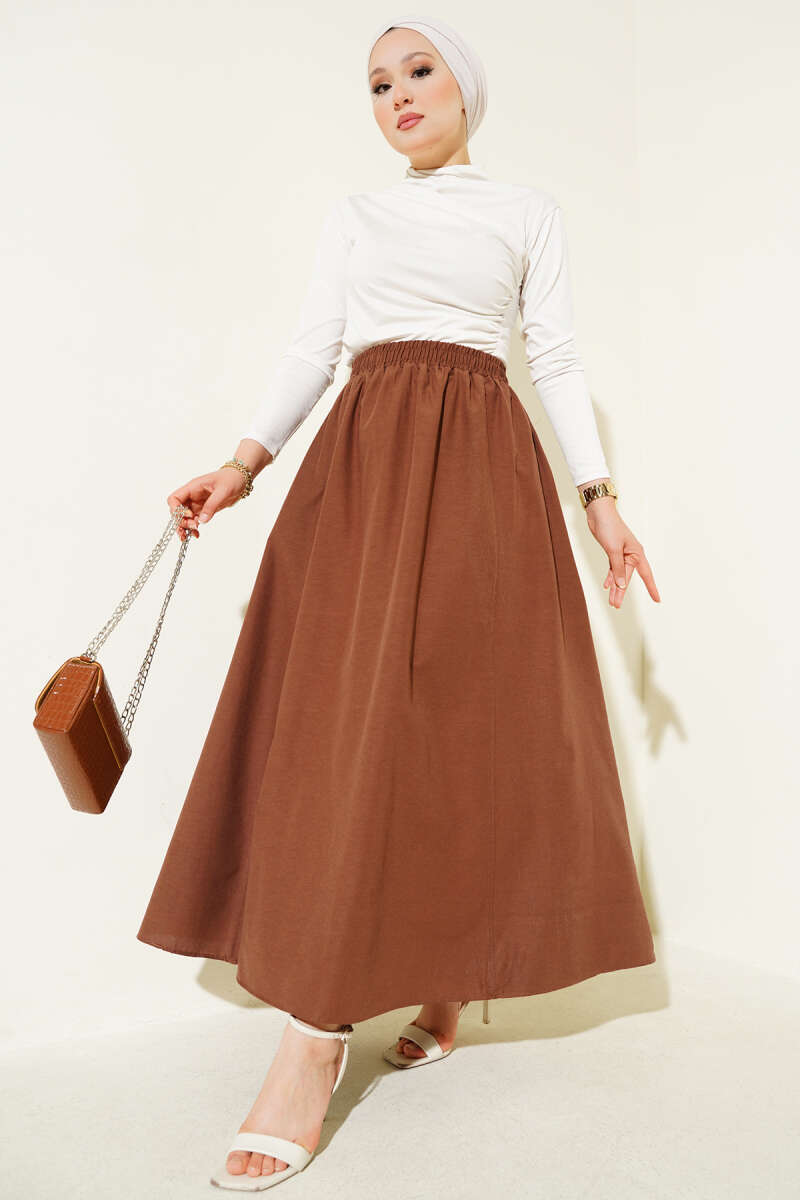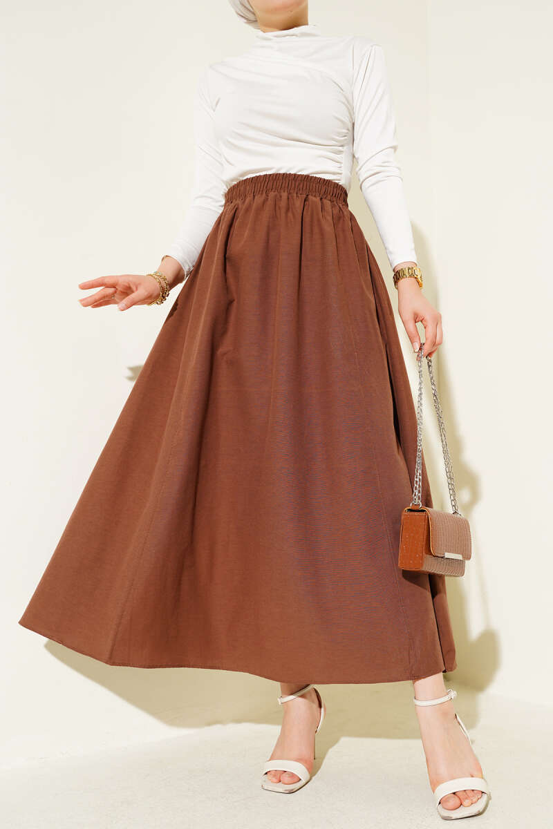 Kemerli Ekose Desenli Etek Kahve