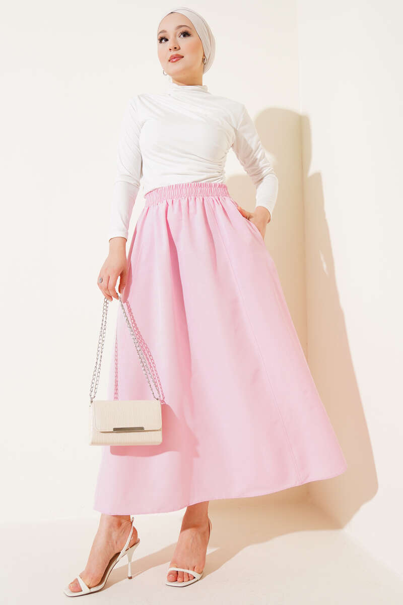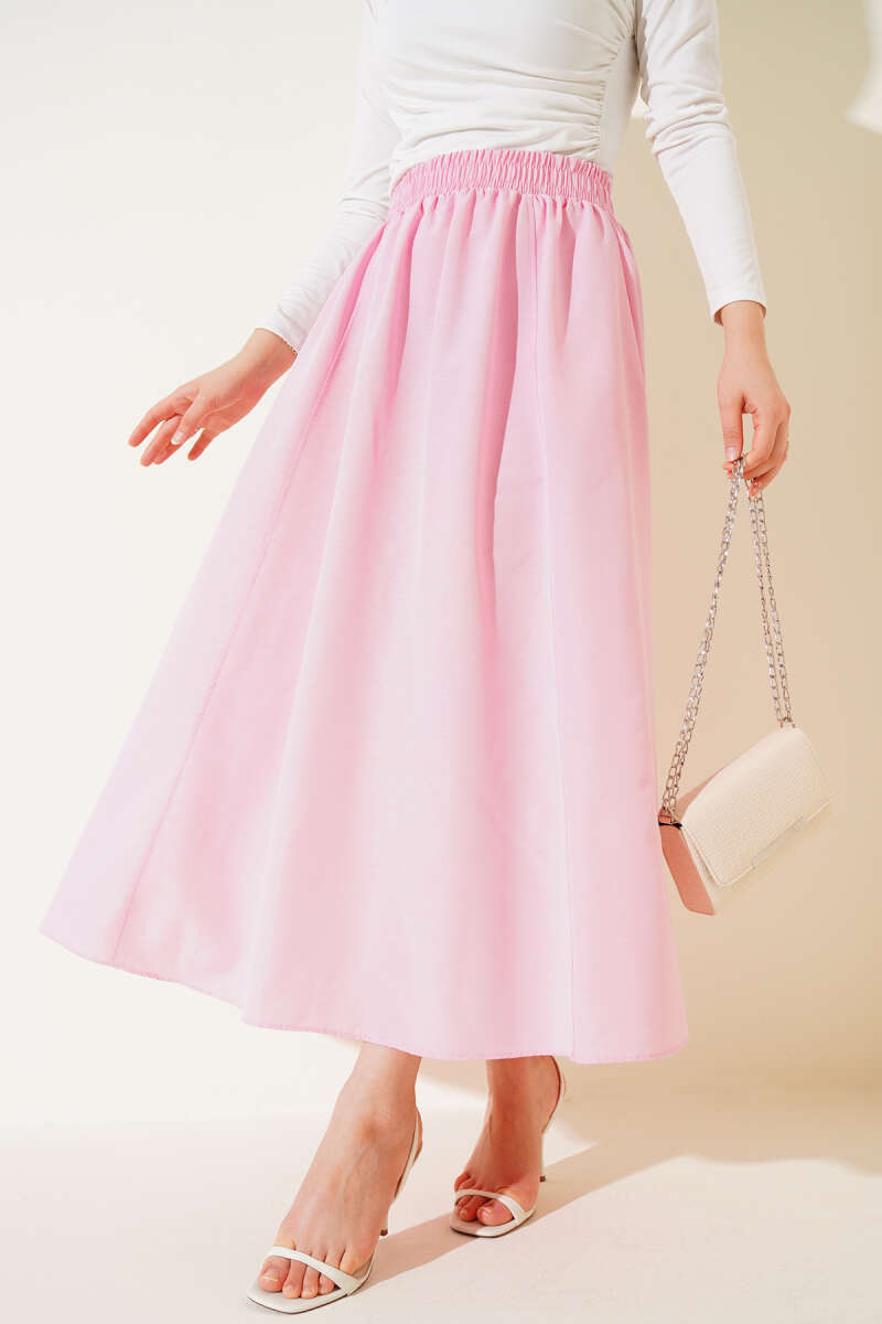 Beli Lastikli Fırfırlı Etek Çağla Yeşili