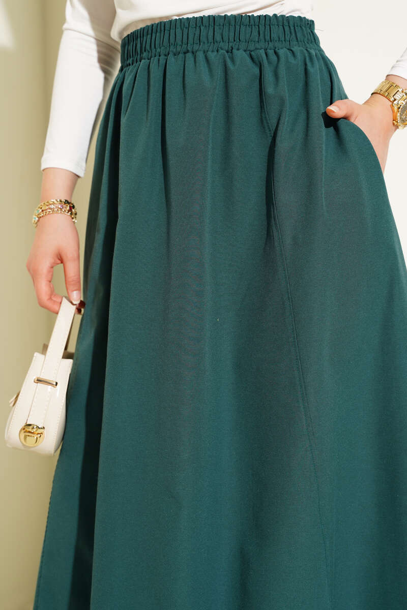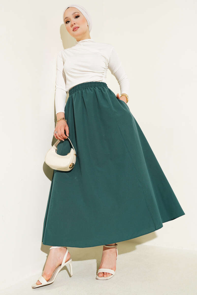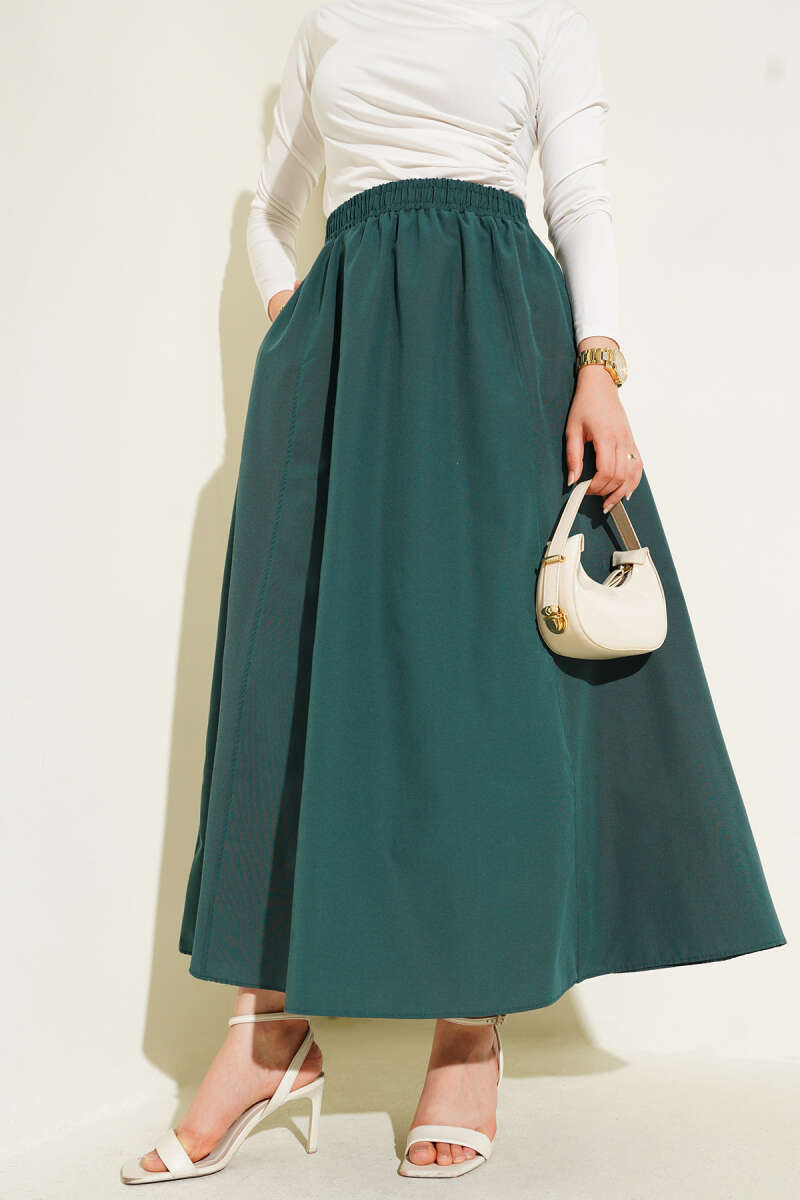 Beli Lastikli Fırfırlı Etek Çağla Yeşili