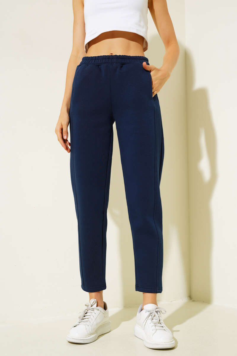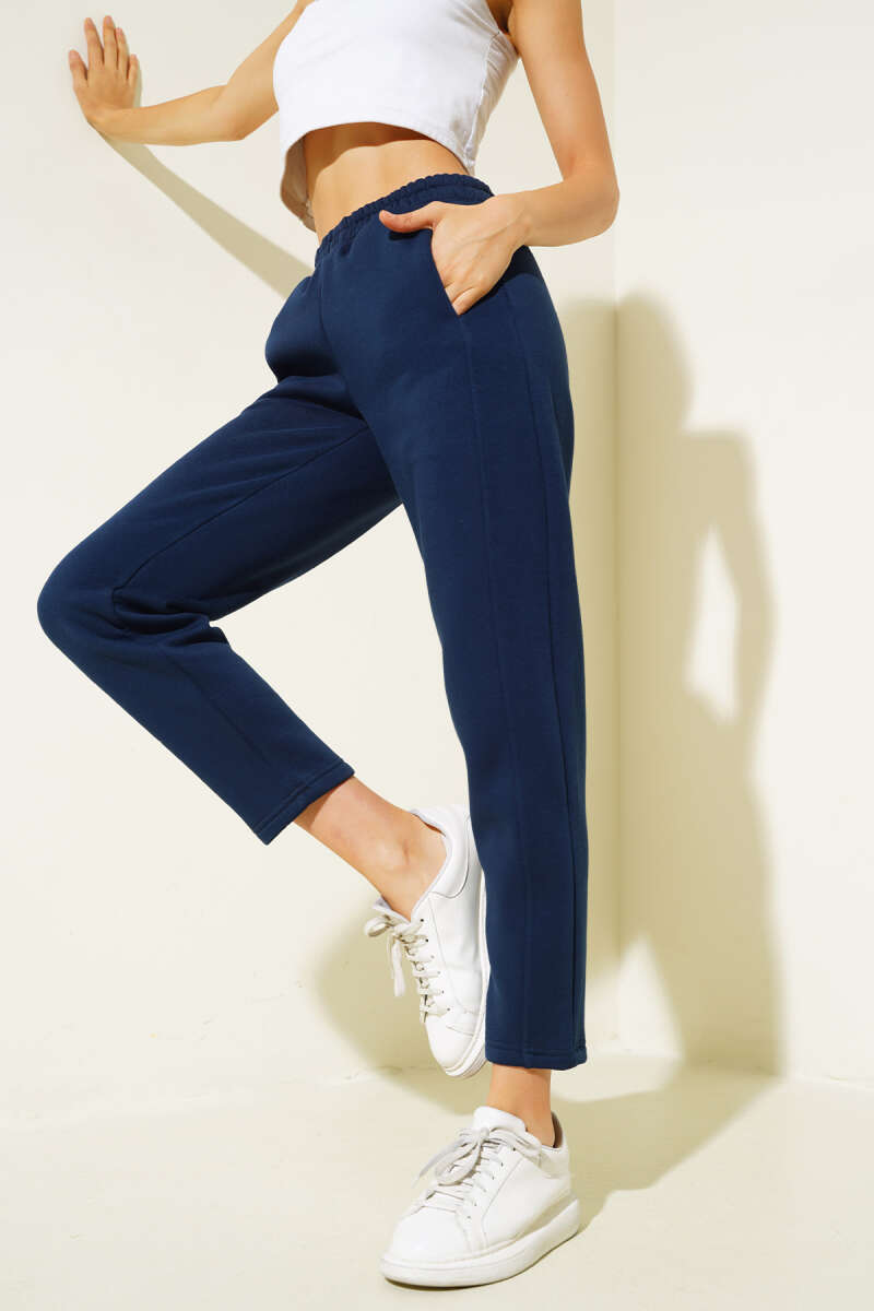 Bel Lastikli Üç İplik Pantolon Lacivert