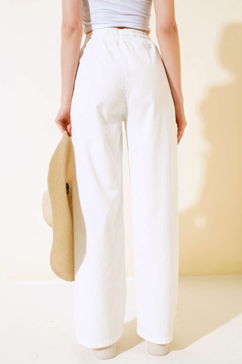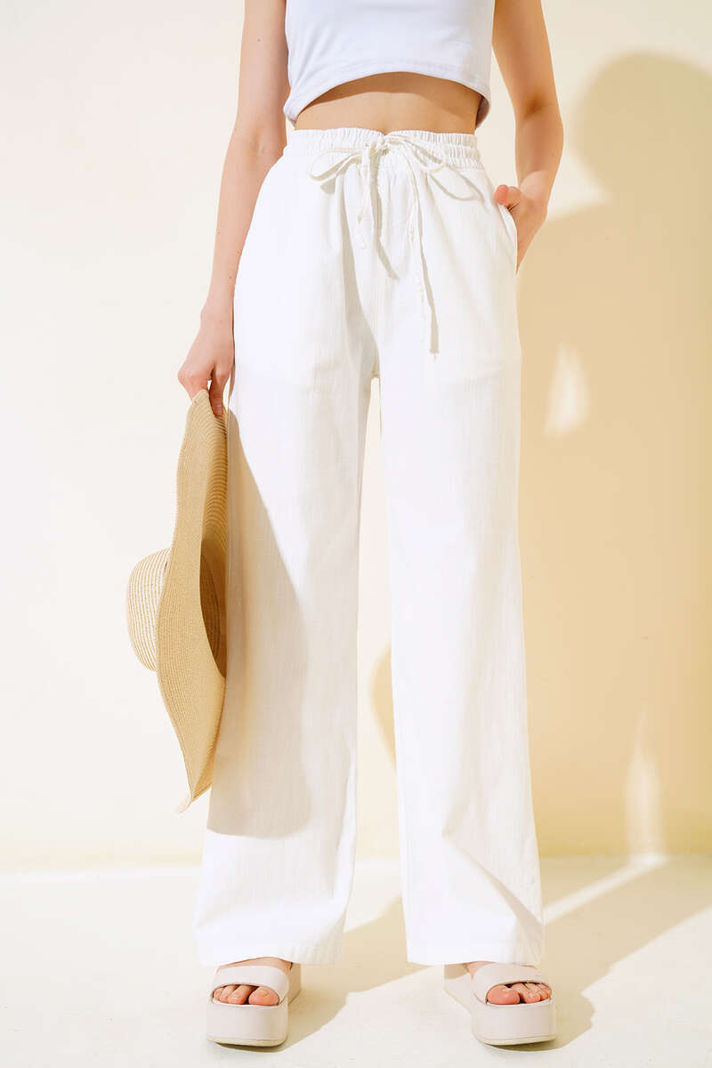 Yeni sezon pantolon modelimiz sizlerle beraber. Pantolonumuzun beli lastikli ve ip bağcıklıdır. İki adet cebi vardır. Pantolonumuz uzun ve salaş modeldir. Kombinlerinize bambaşka bir hava katacak pantolonumuz sizleri bekliyor.