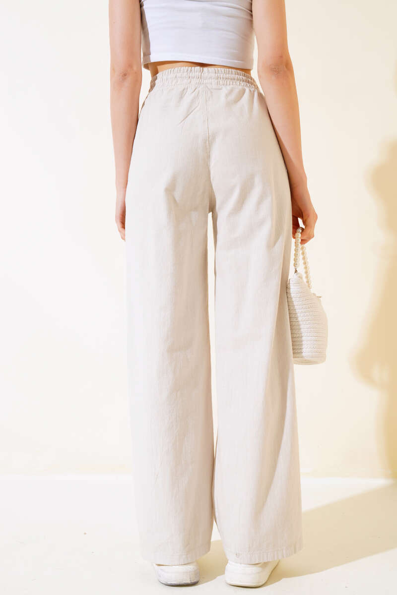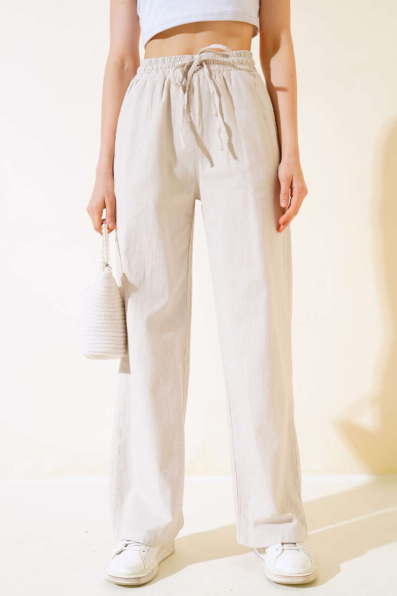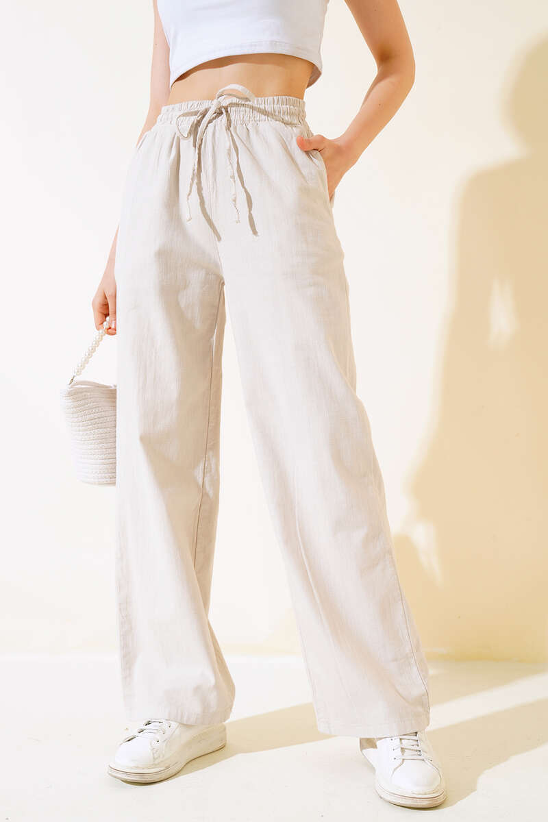 Yeni sezon pantolon modelimiz sizlerle beraber. Pantolonumuzun beli lastikli ve ip bağcıklıdır. İki adet cebi vardır. Pantolonumuz uzun ve salaş modeldir. Kombinlerinize bambaşka bir hava katacak pantolonumuz sizleri bekliyor.