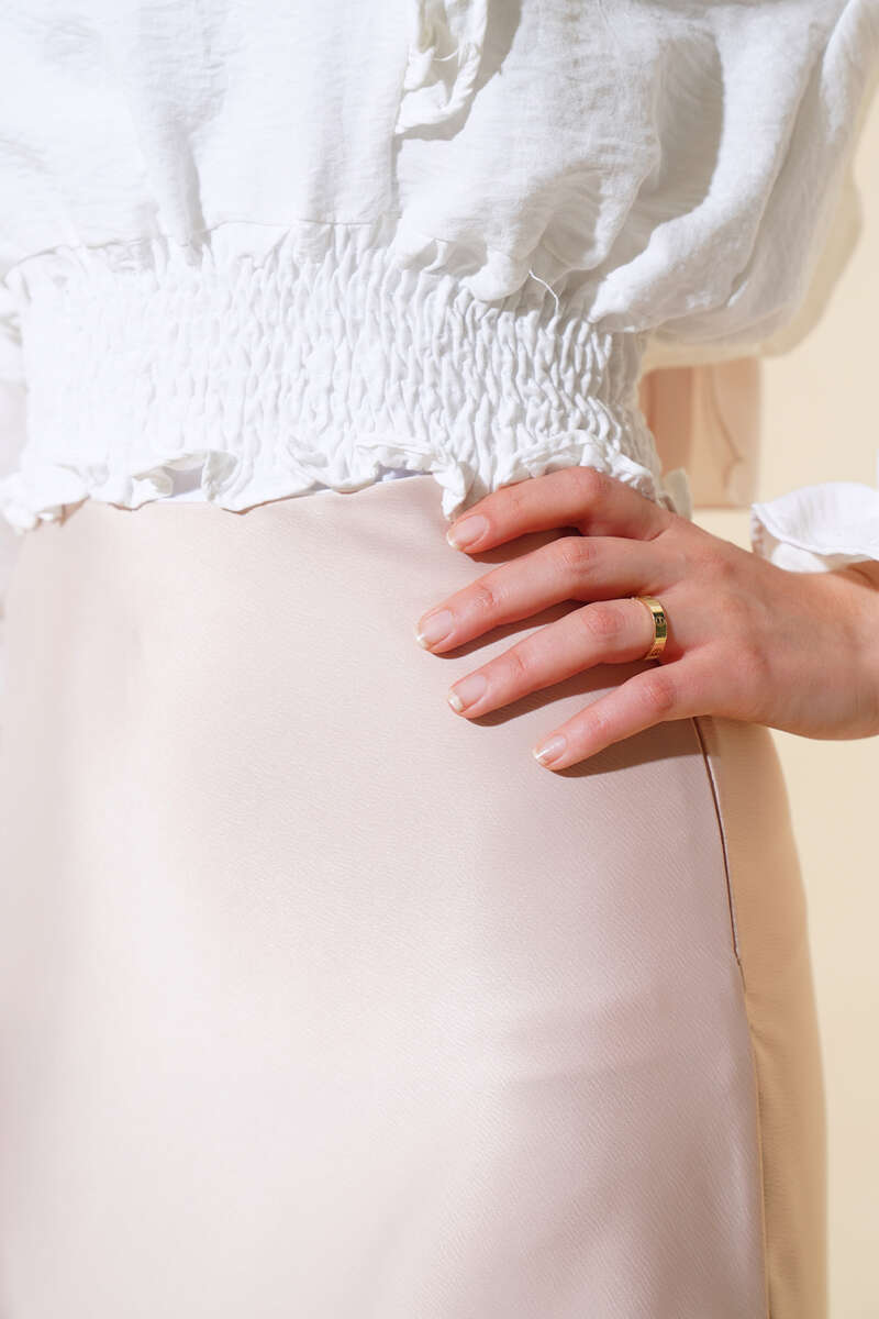 Beli Lastik Detaylı Kloş Scuba Etek Beyaz