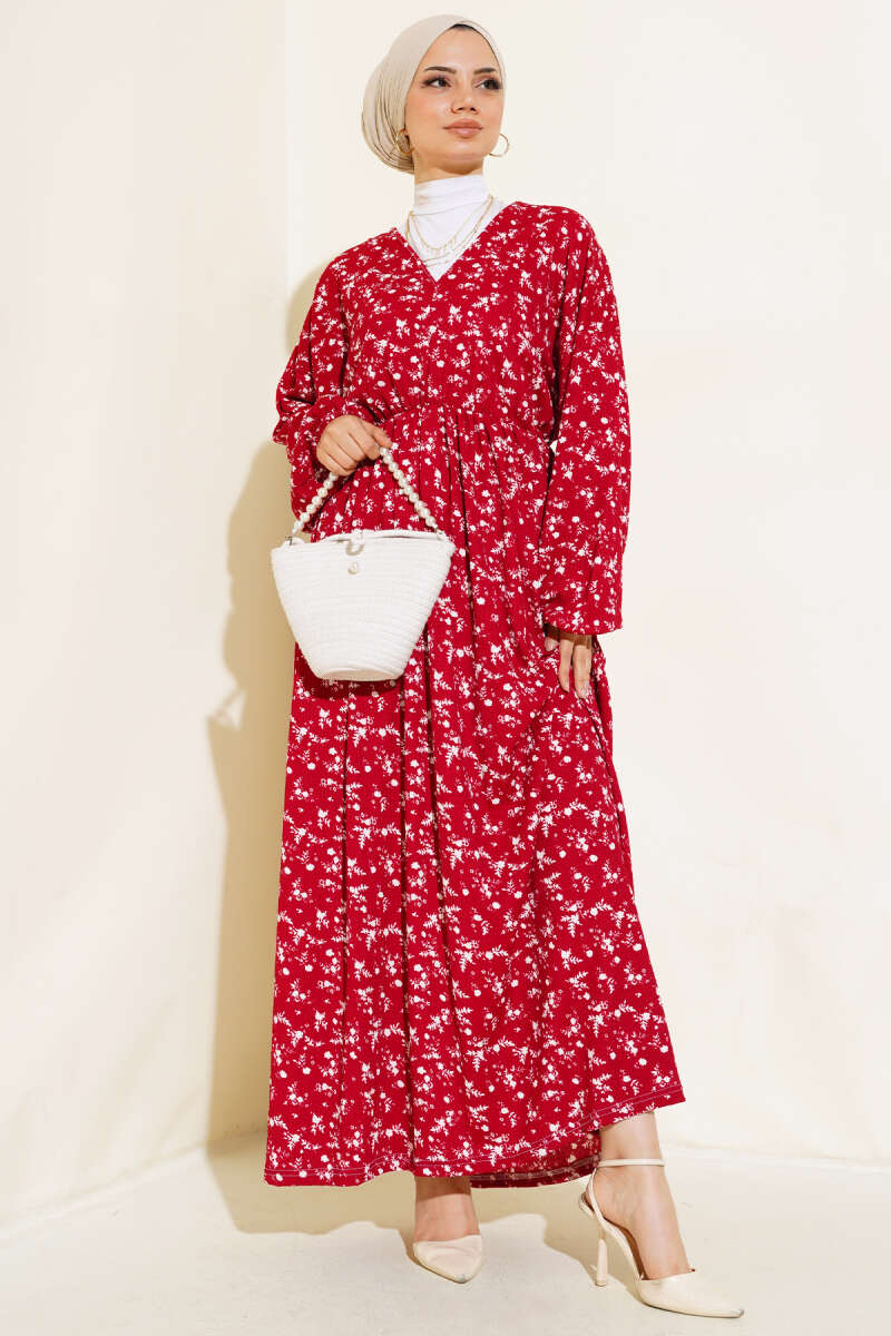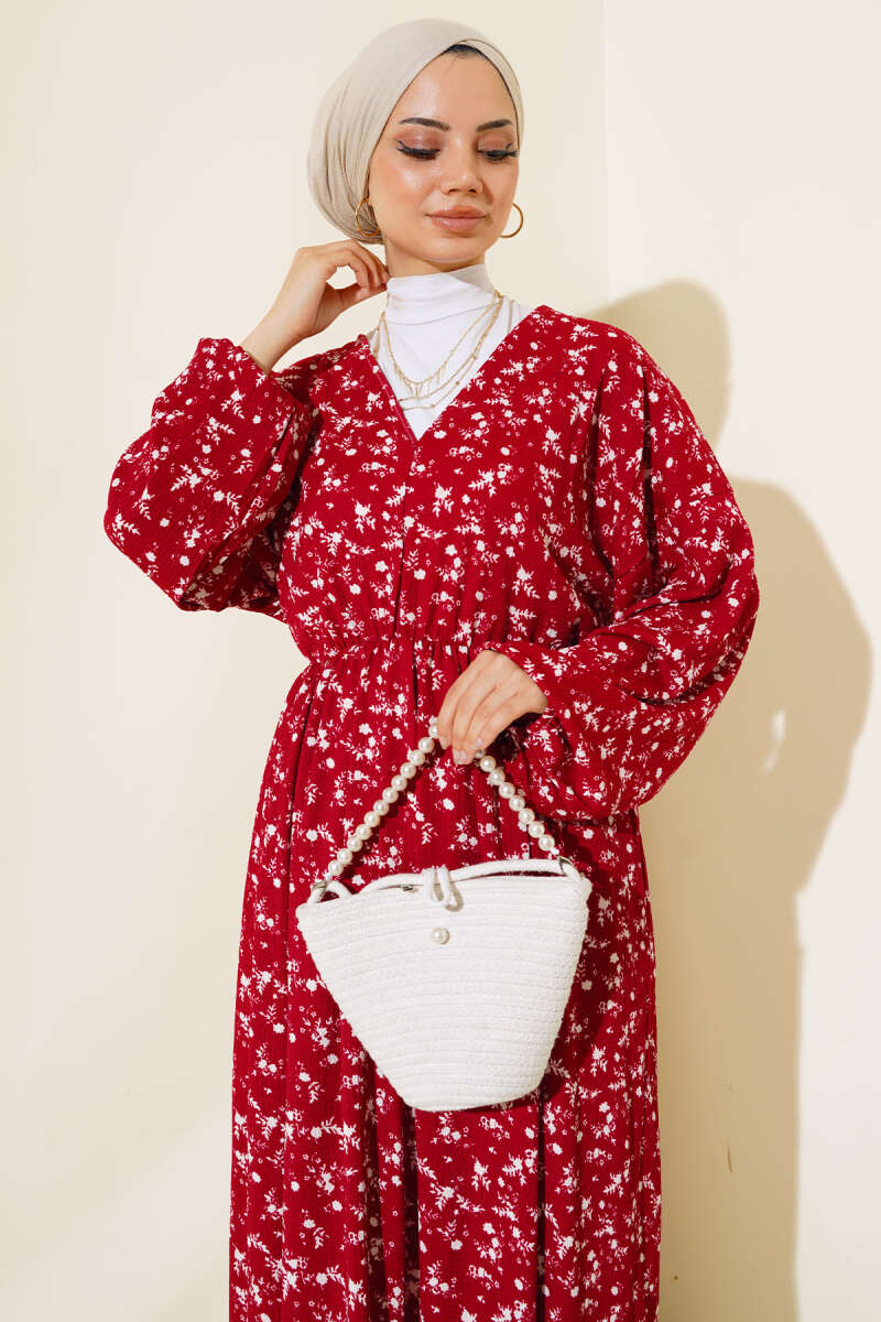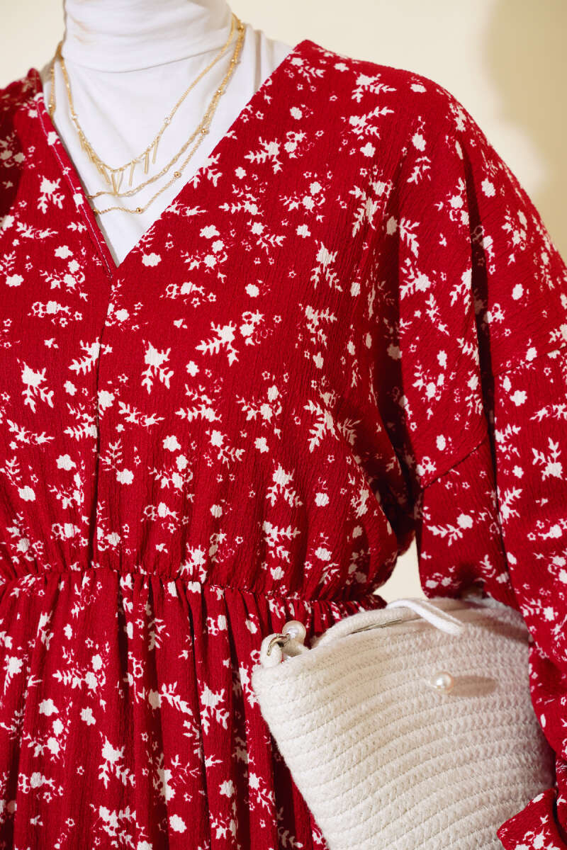 Yeni sezon elbisemiz harika tasarımıyla sizler için geldi. Elbisemiz v yakalıdır. Beli ve kol bilekleri lastiklidir. Astarsızdır. Kolları geniş modeldir. Çiçek desenleriyle hareketlilik kazanan elbisemiz yaz ve bahar ayları için sizleri bekliyor.