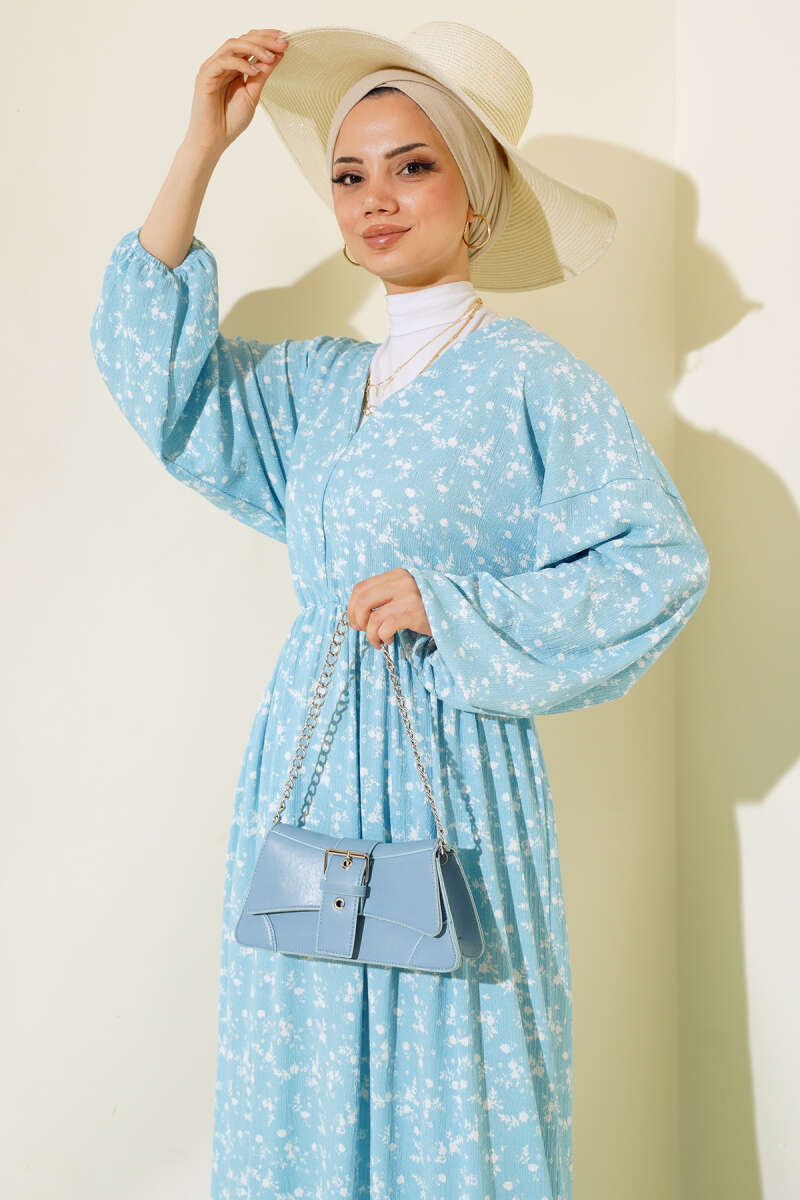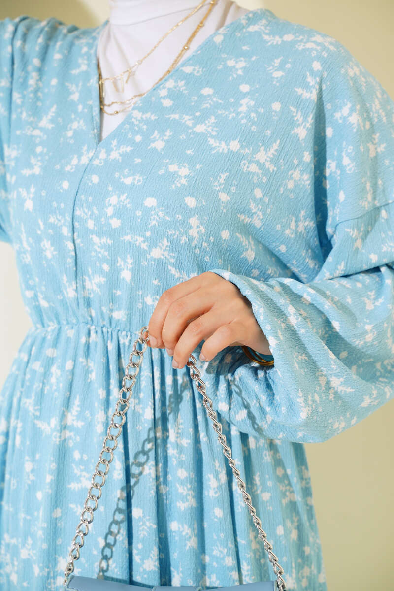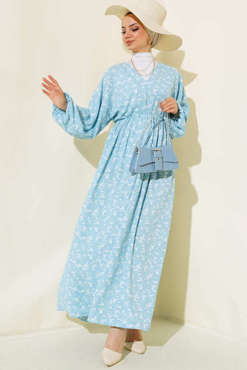 Yeni sezon elbisemiz harika tasarımıyla sizler için geldi. Elbisemiz v yakalıdır. Beli ve kol bilekleri lastiklidir. Astarsızdır. Kolları geniş modeldir. Çiçek desenleriyle hareketlilik kazanan elbisemiz yaz ve bahar ayları için sizleri bekliyor.