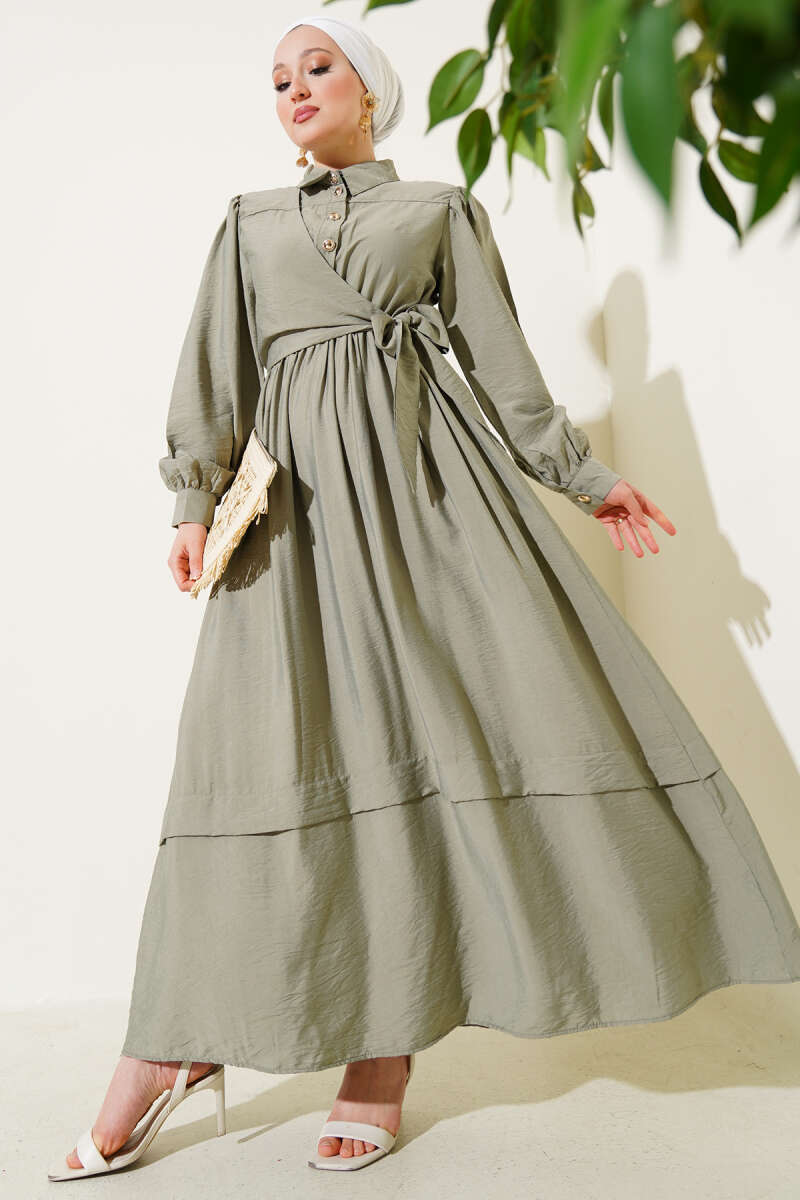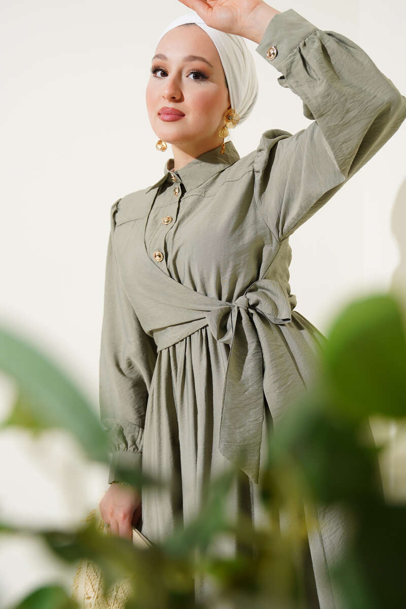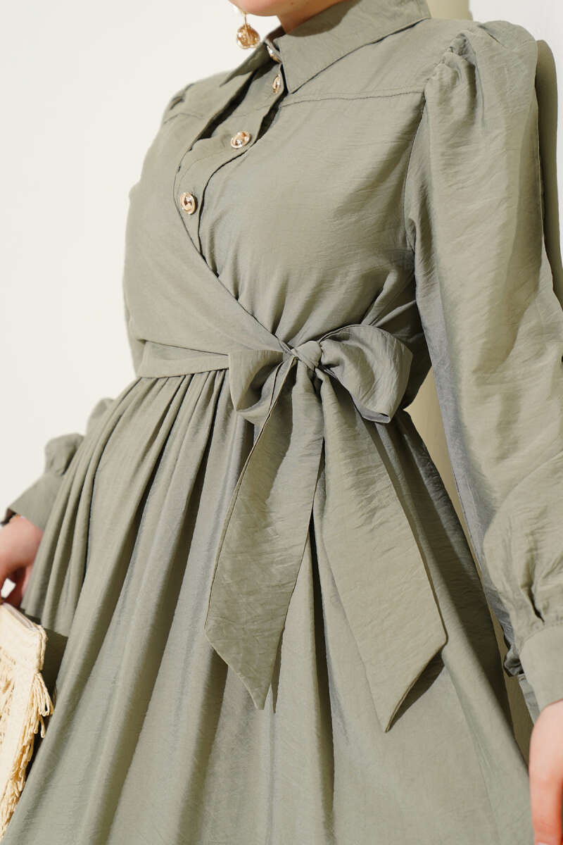 Şerit Ajur Desen Triko Elbise Zümrüt Yeşili