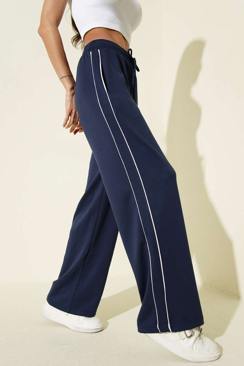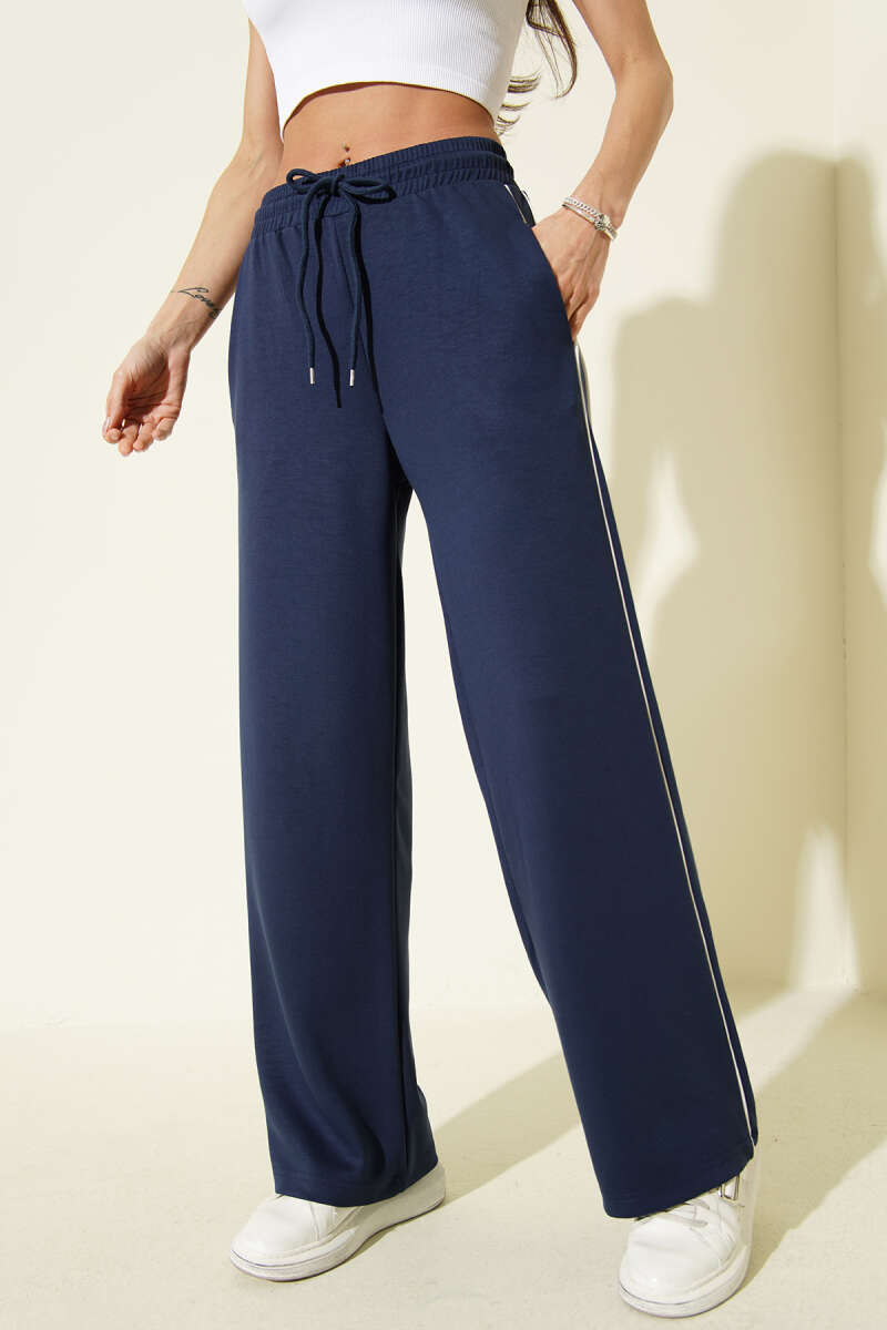 Bel Lastikli Yan Biyeli Loyşa Pantolon Lacivert