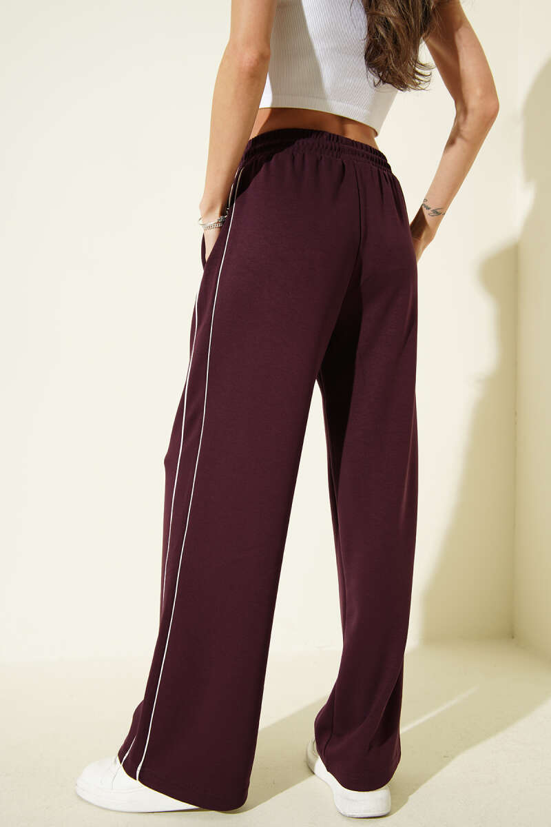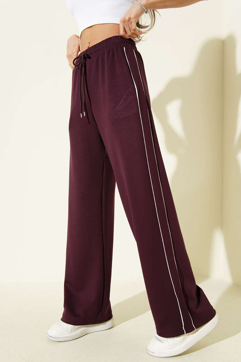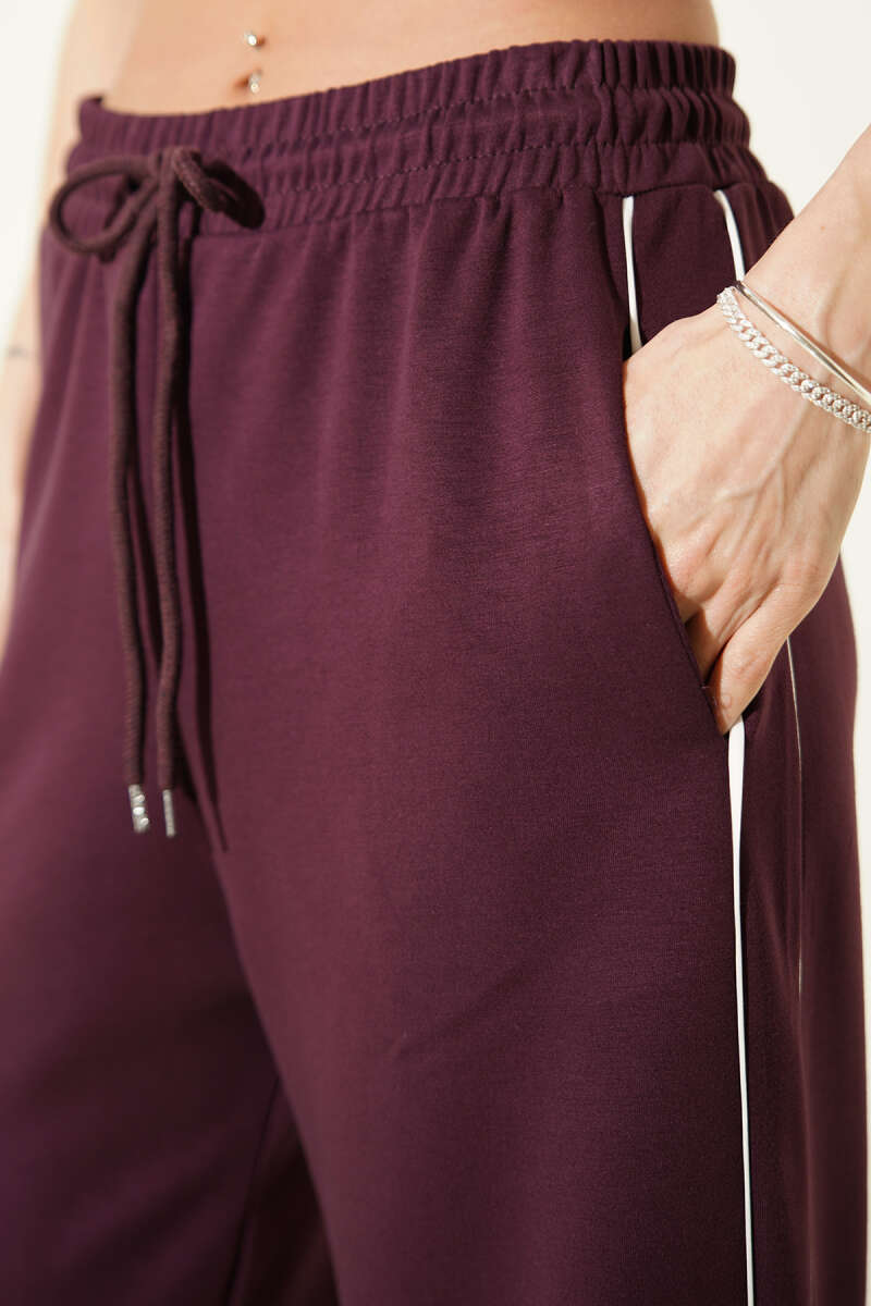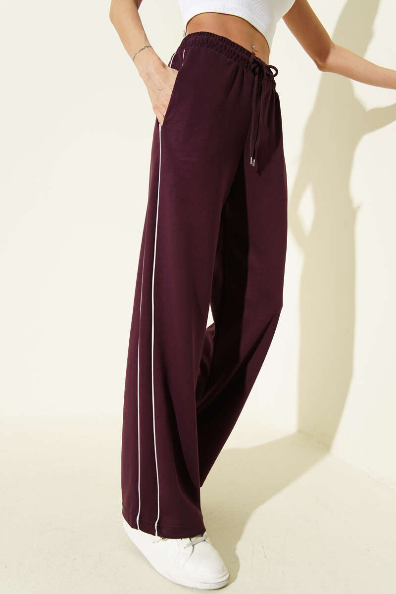Bel Lastikli Yan Biyeli Loyşa Pantolon Mürdüm