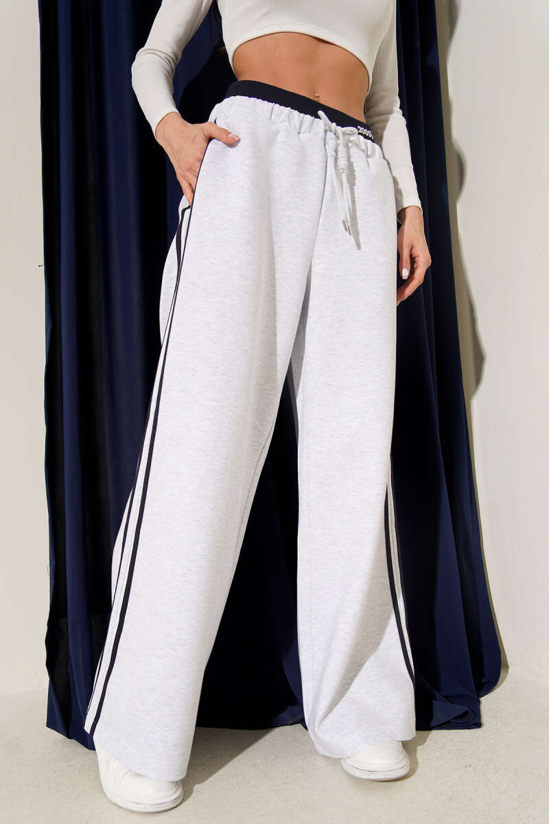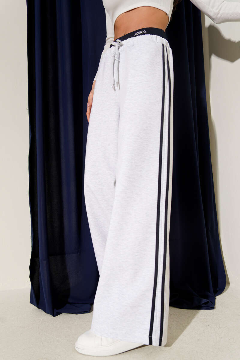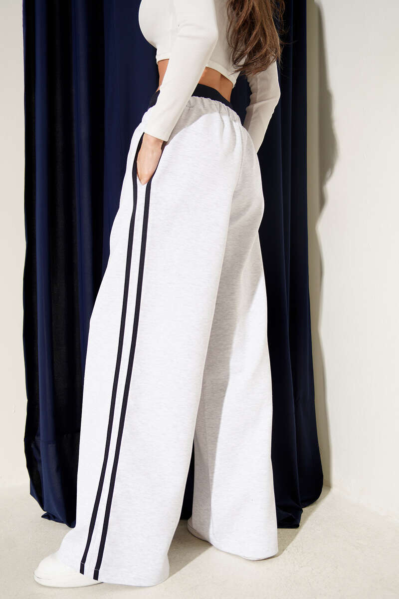 Bel Lastikli Yan Şerit Geniş Paça Pantolon Gri