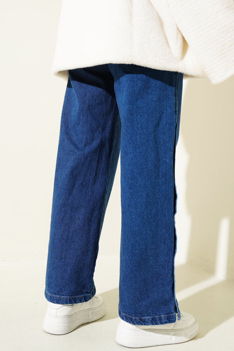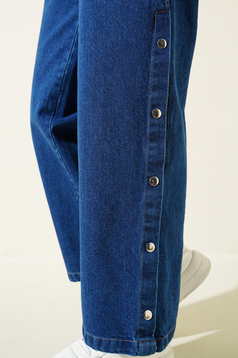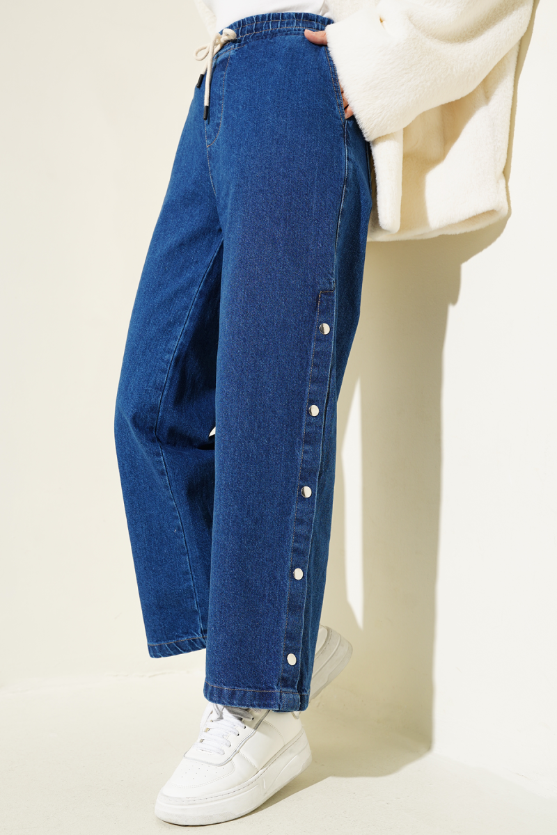 Bel Lastikli Yanları Çıtçıtlı Kot Pantolon Orta Mavi