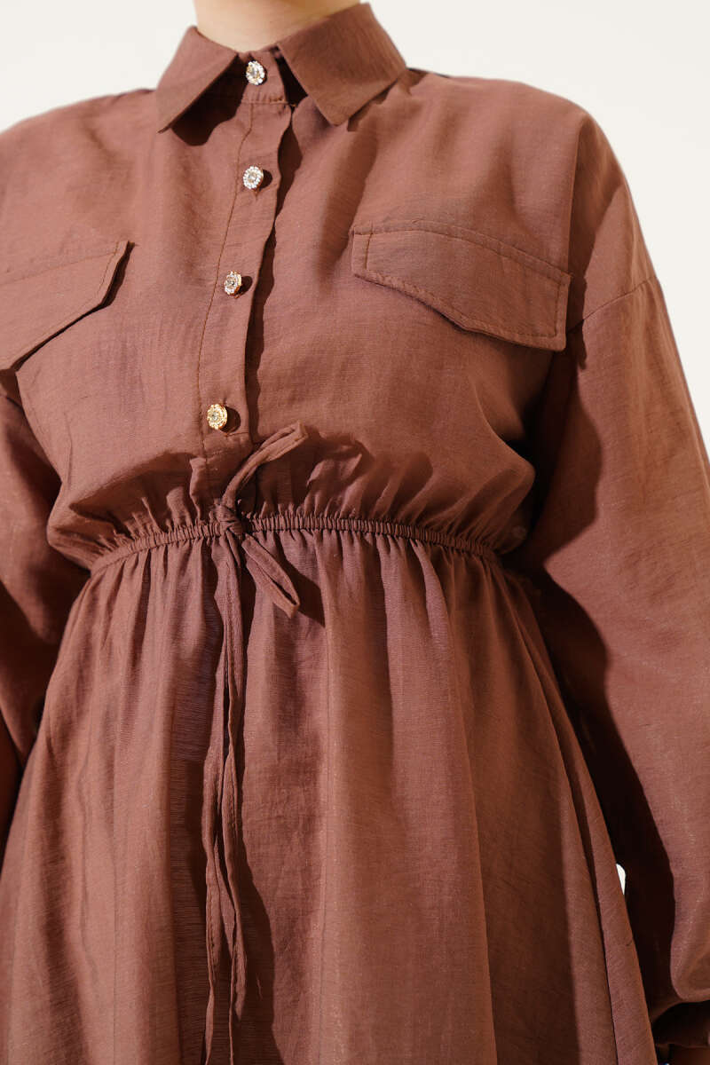 Kanguru Cepli Kapüşonlu Şardonlu Sweatshirt Kahve
