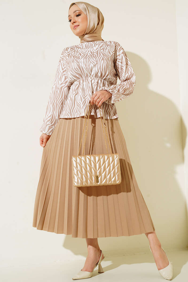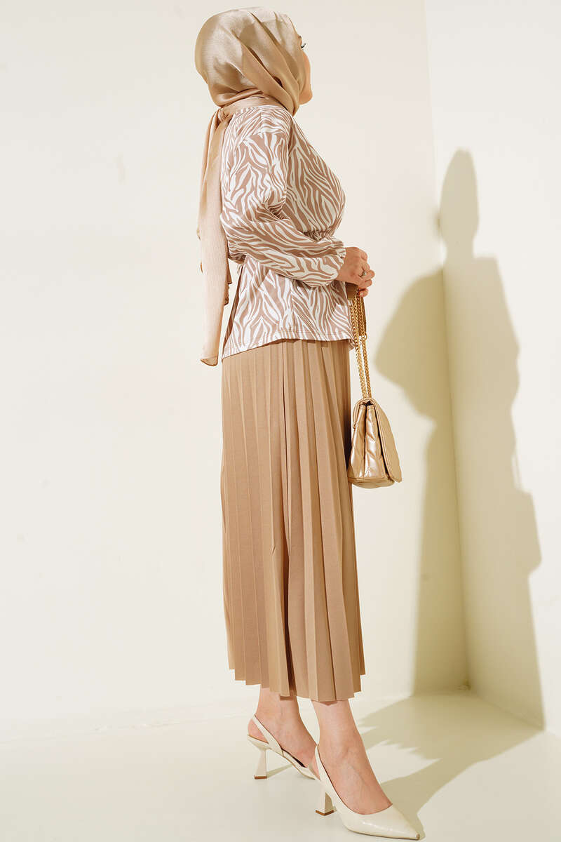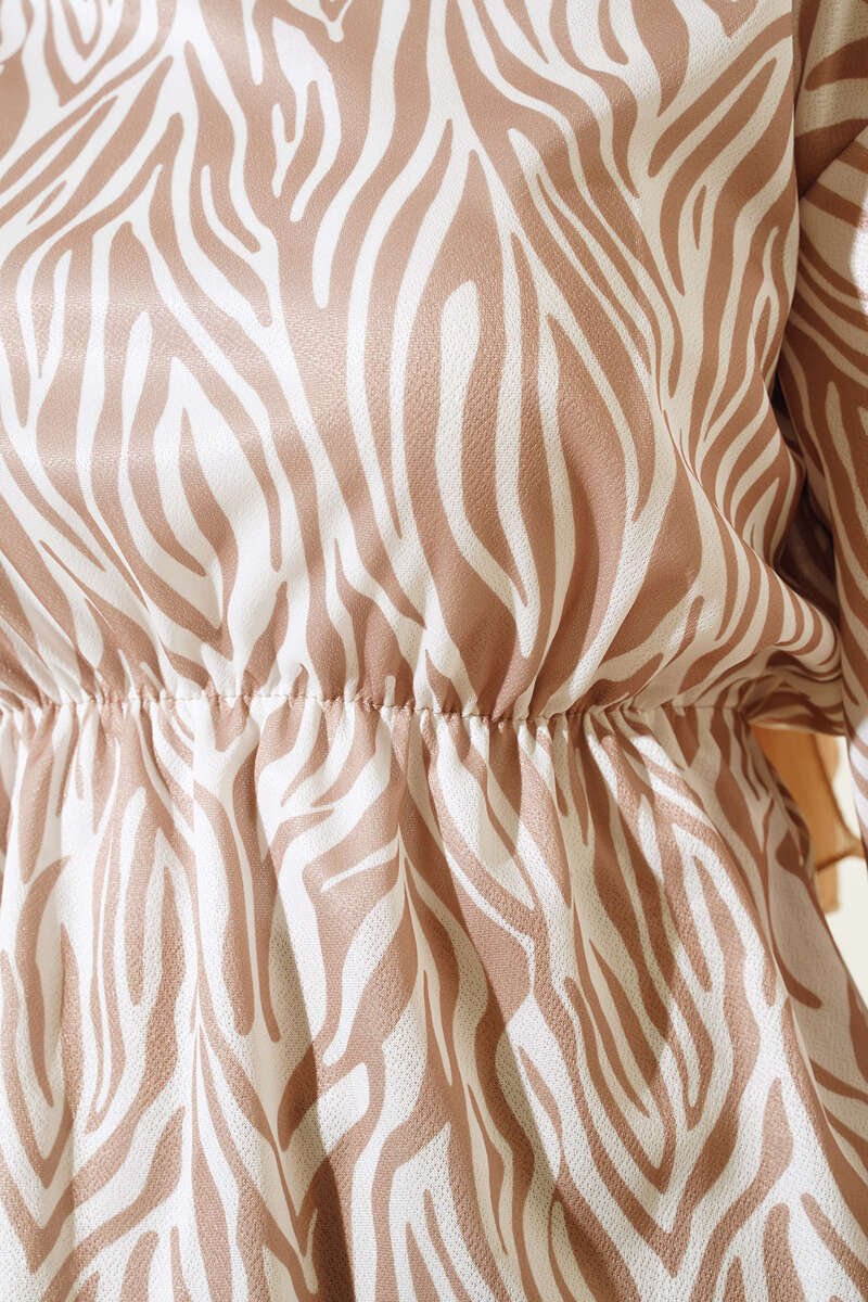 Bel Lastikli Zebra Desenli Etekli Takım Latte