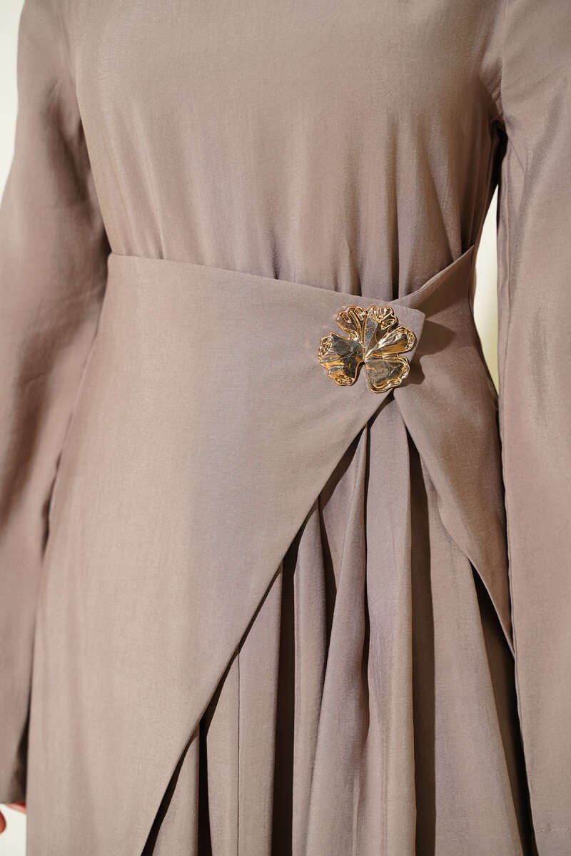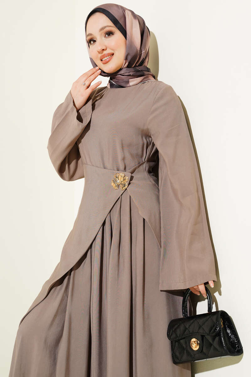 Taş Detaylı Elbise Bej