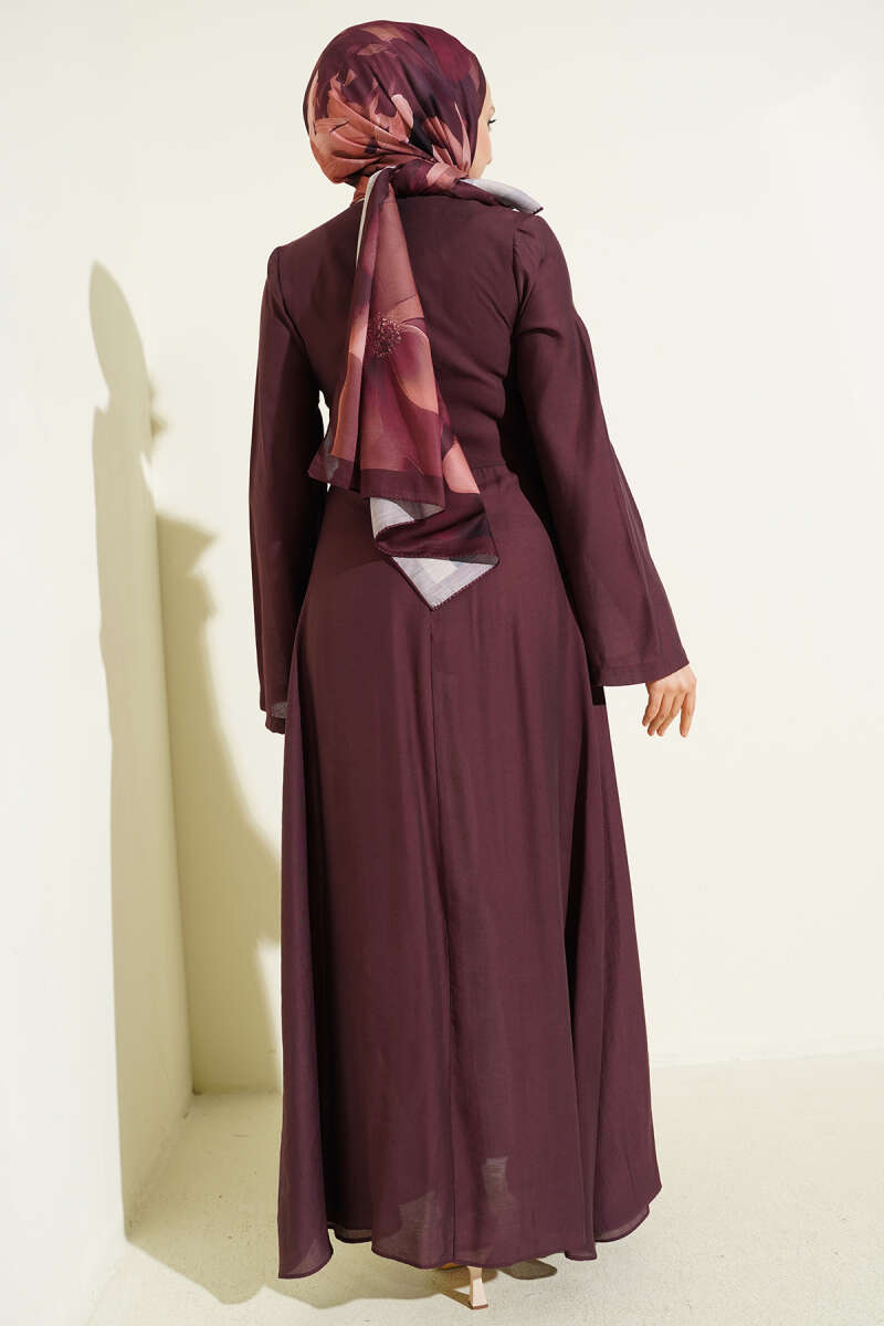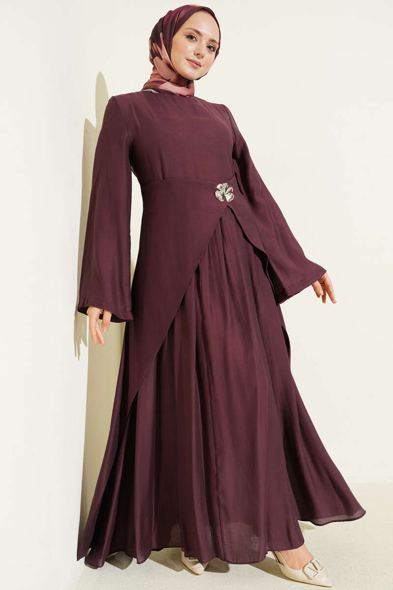Şerit Taş Süslemeli Abiye Elbise Bordo