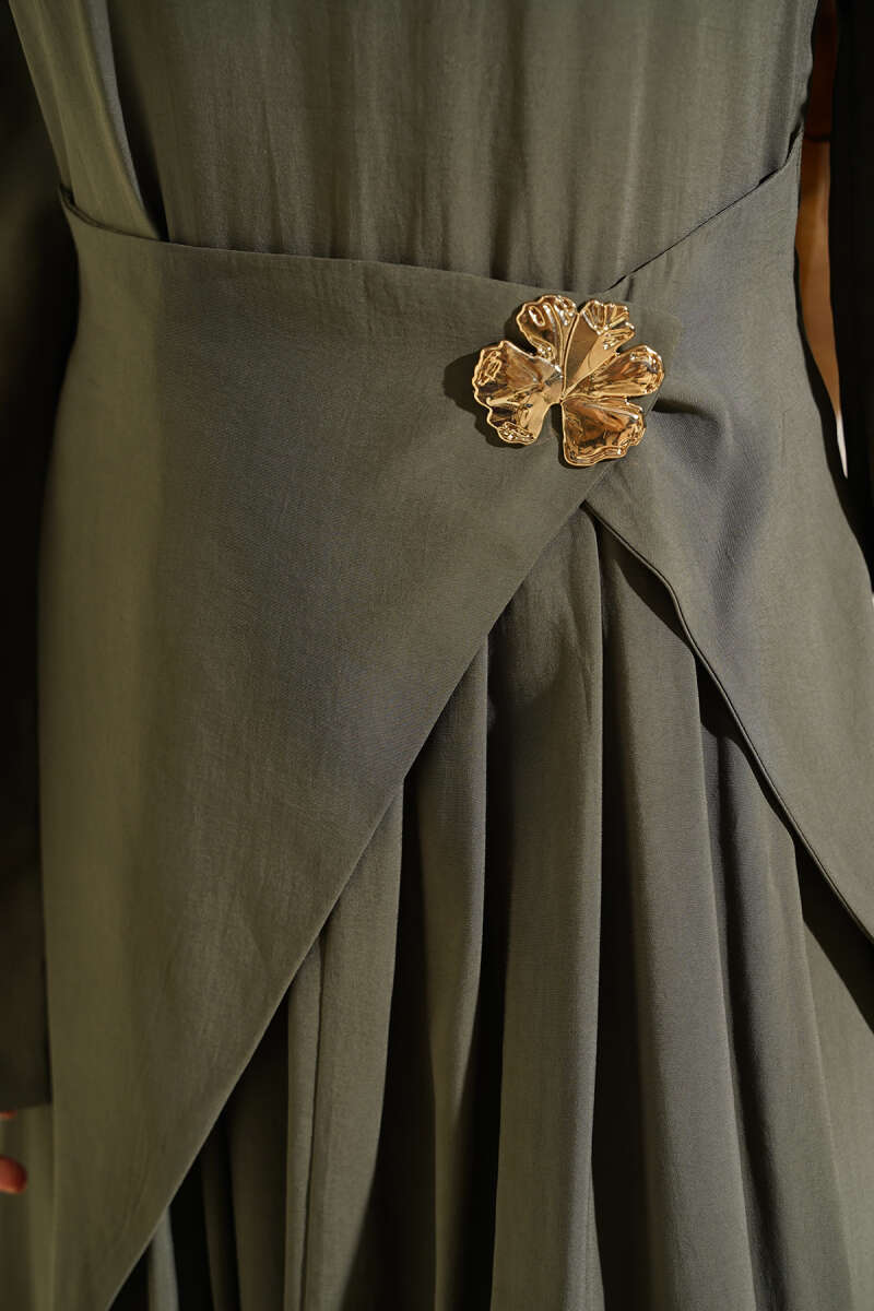 Bel Parça Detaylı Tensel Elbise Haki