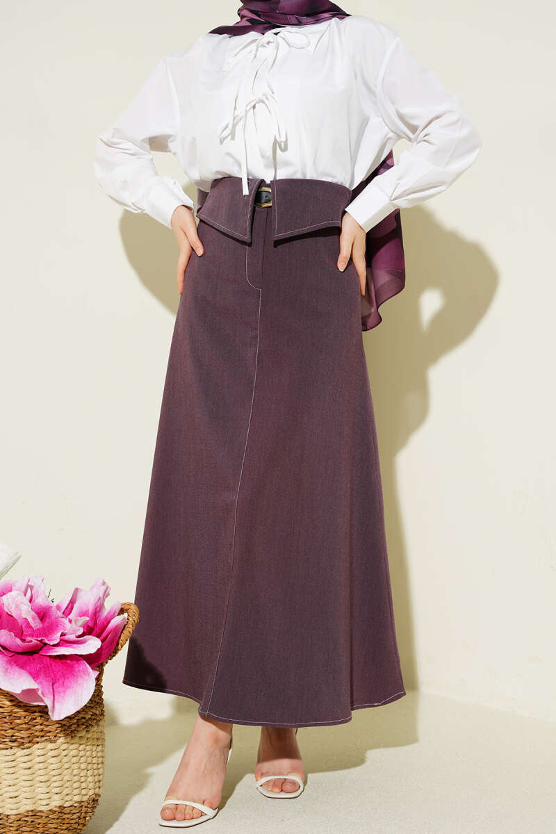 Beli Lastikli Cepli Kloş Kot Etek Füme
