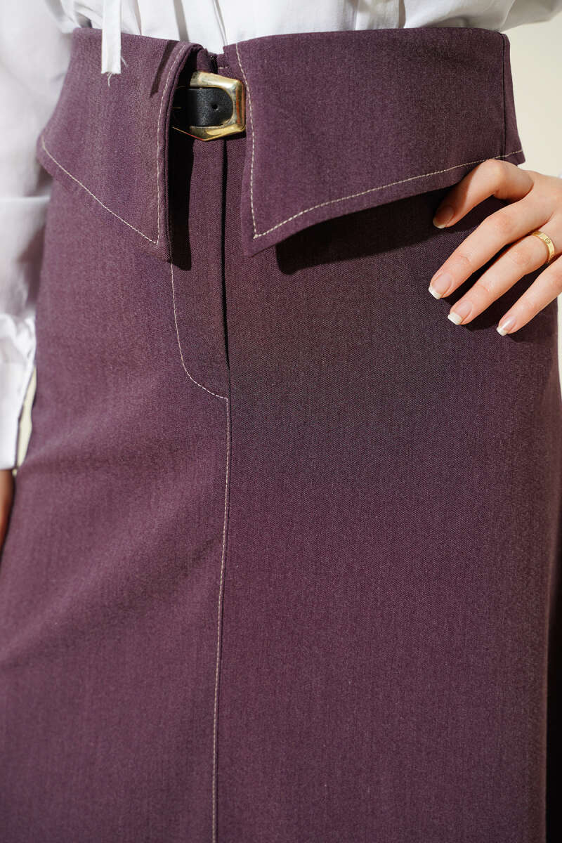 Bel Büzgülü Kemerli Cepli Etek Kahve