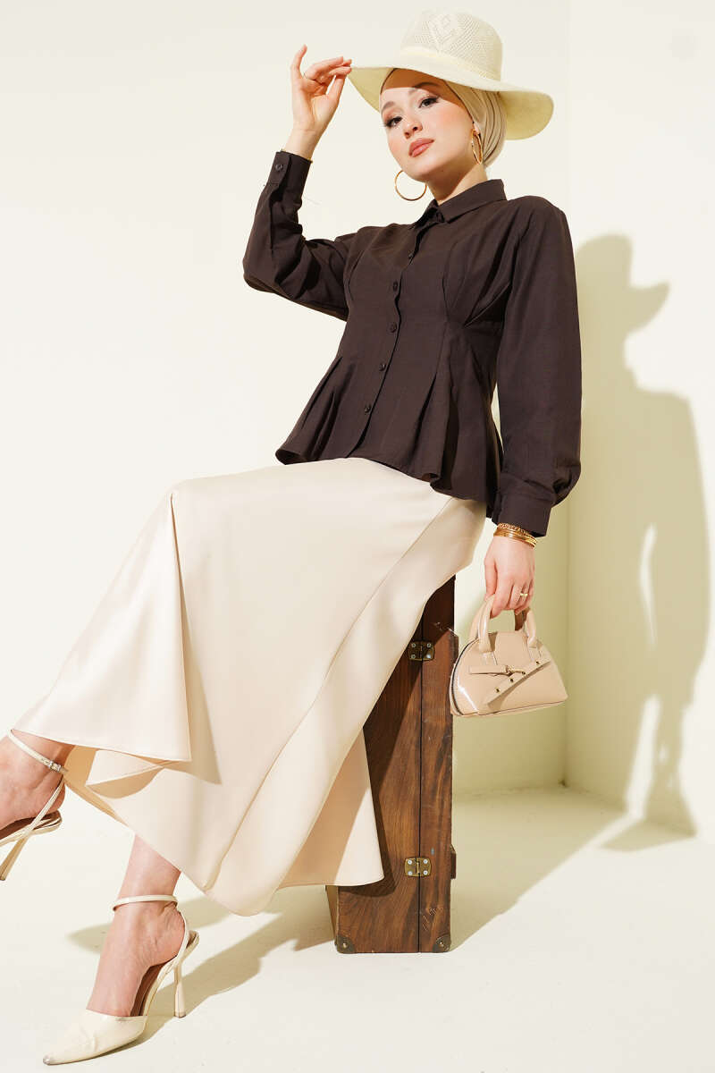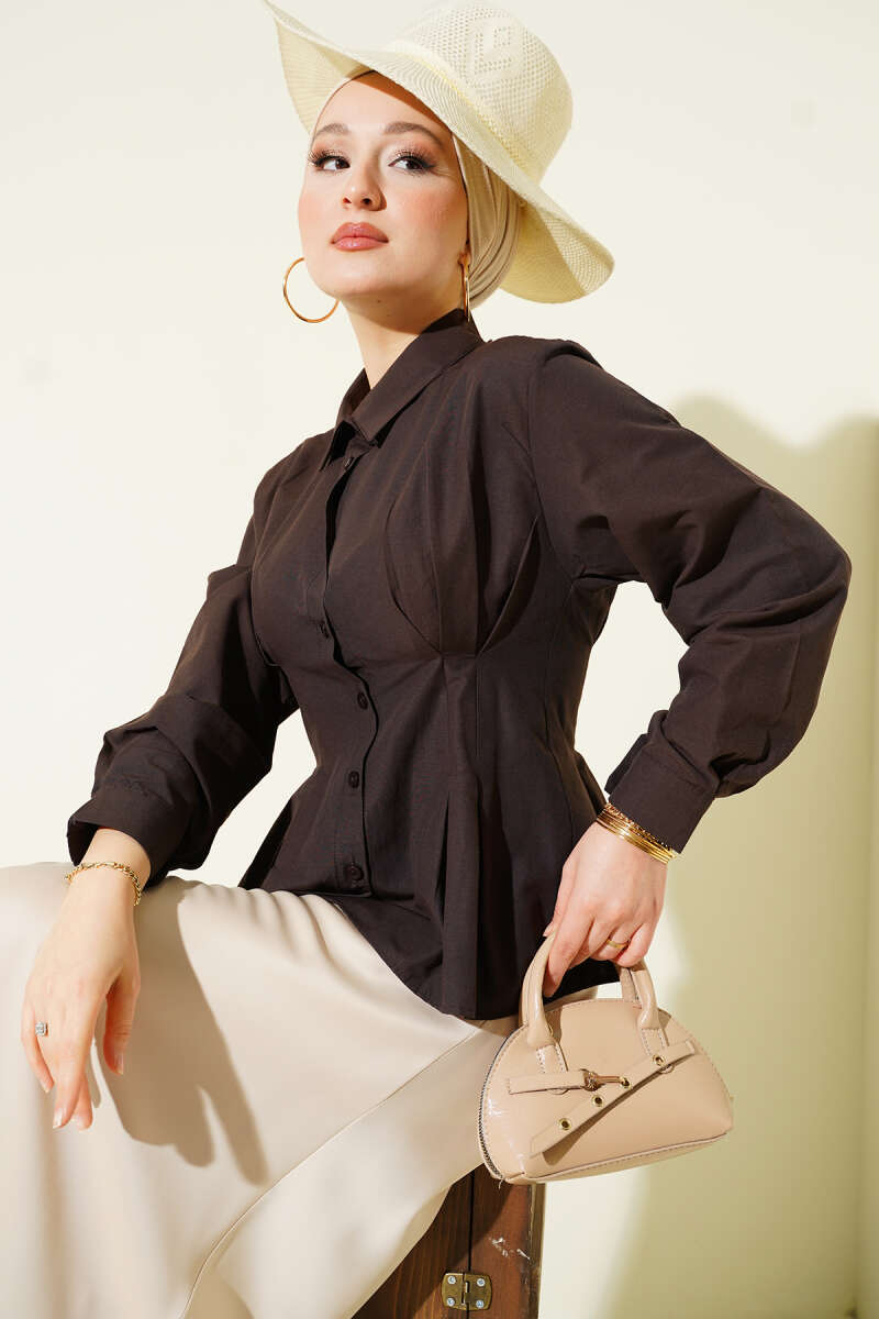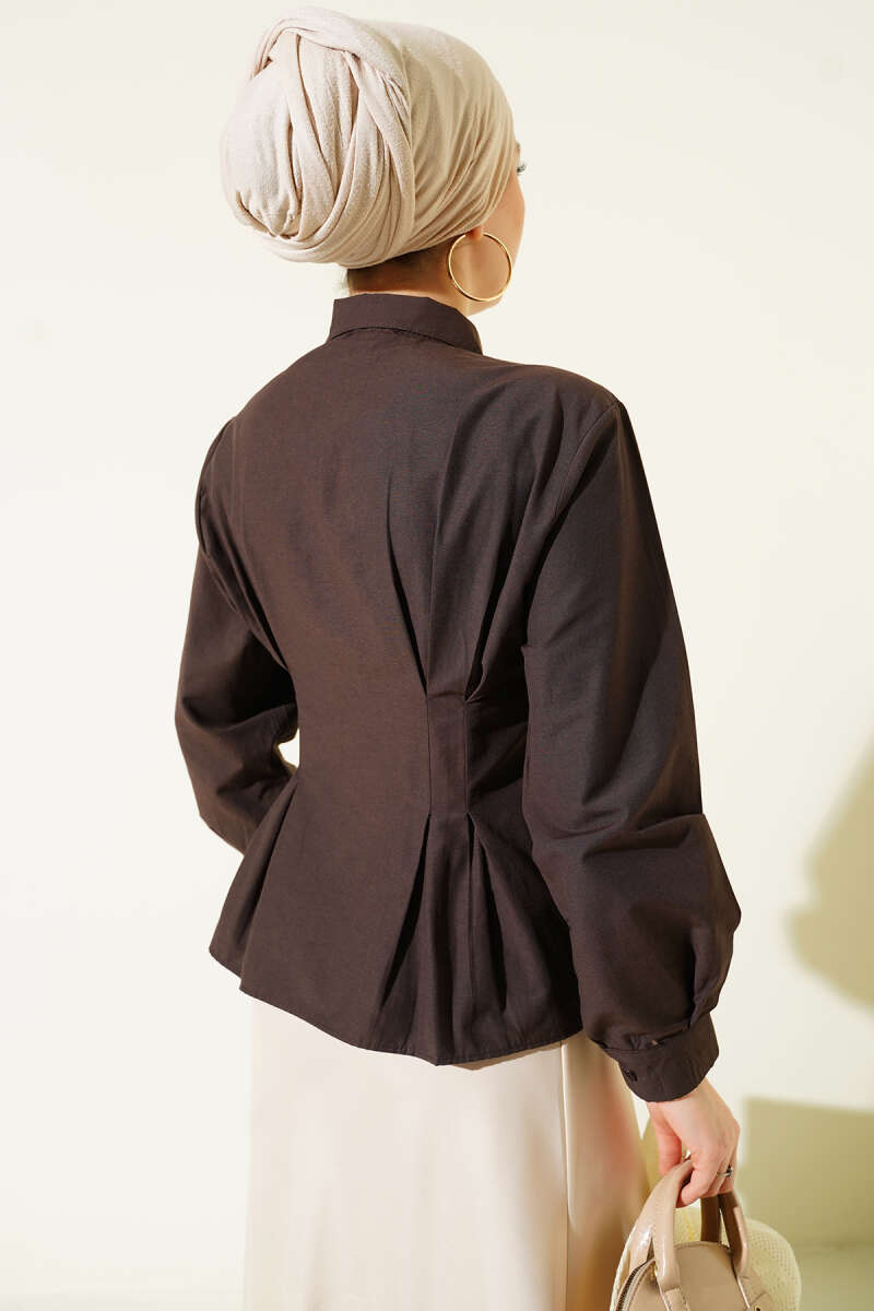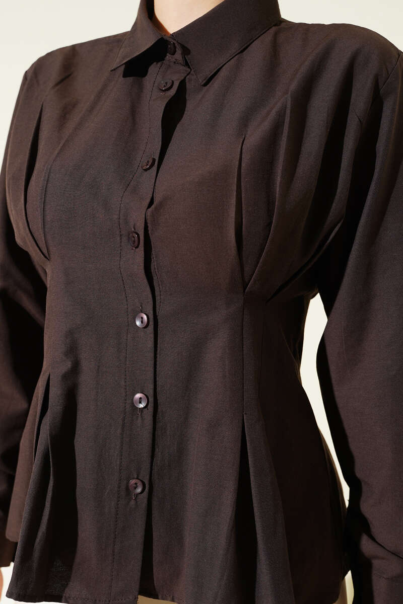 Omuz Pileli Kemerli Gömlek Acı Kahve