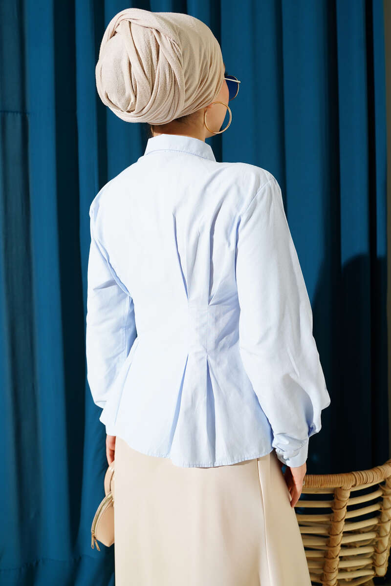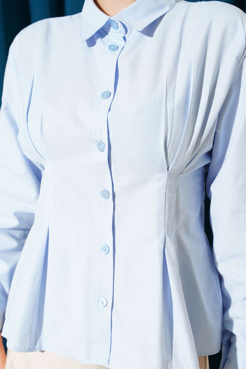 Omuz Pileli Kemerli Gömlek Bebe Mavi