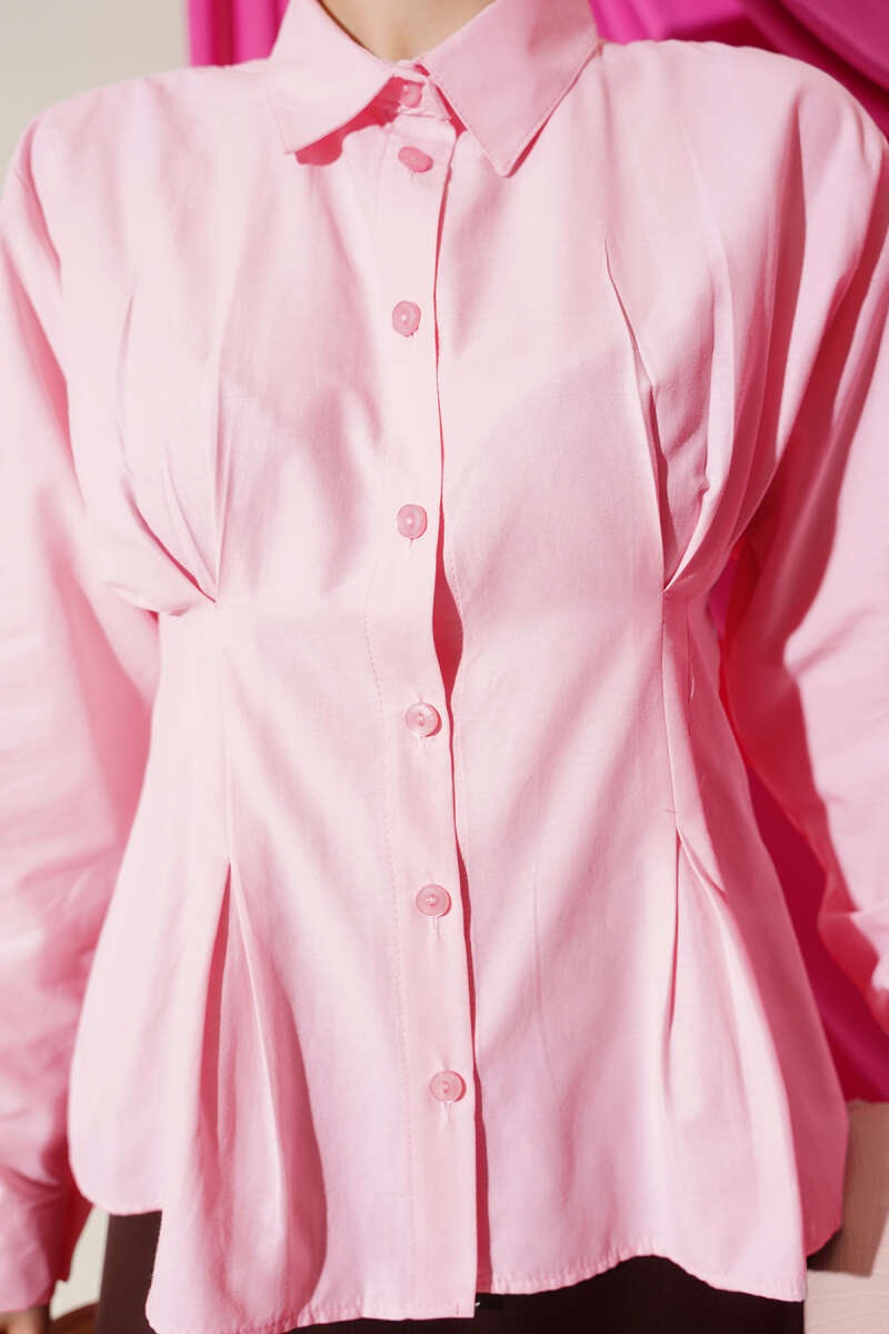 Bel Pens Detaylı Kısa Gömlek Pembe