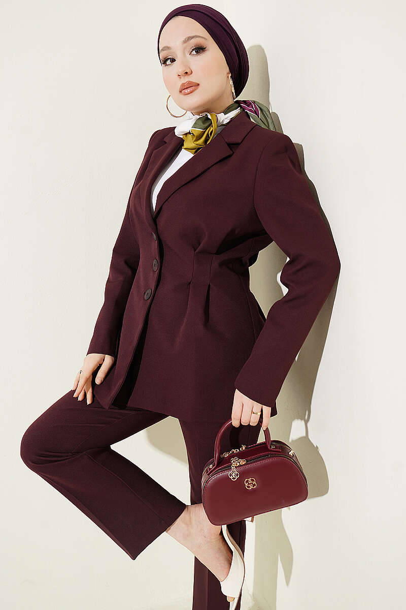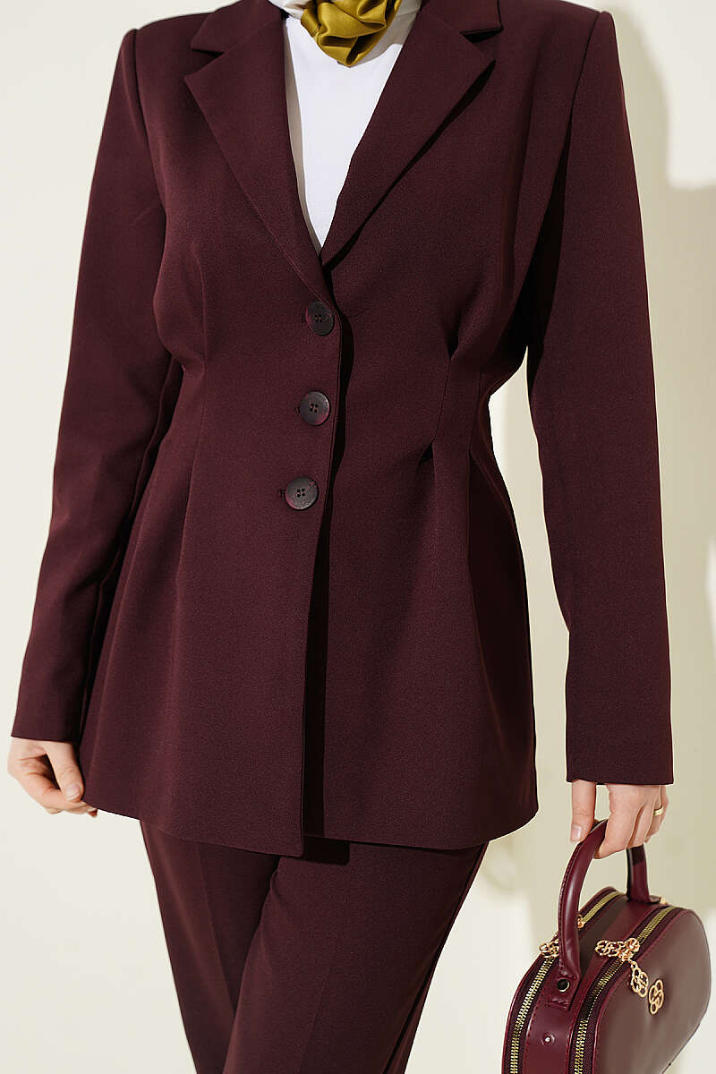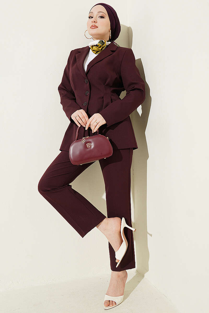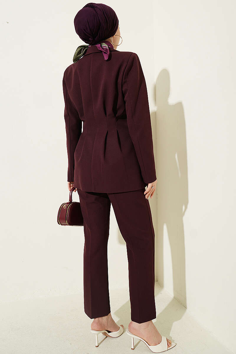 Bel Pensli Düğmeli Ceketli İkili Takım Mürdüm