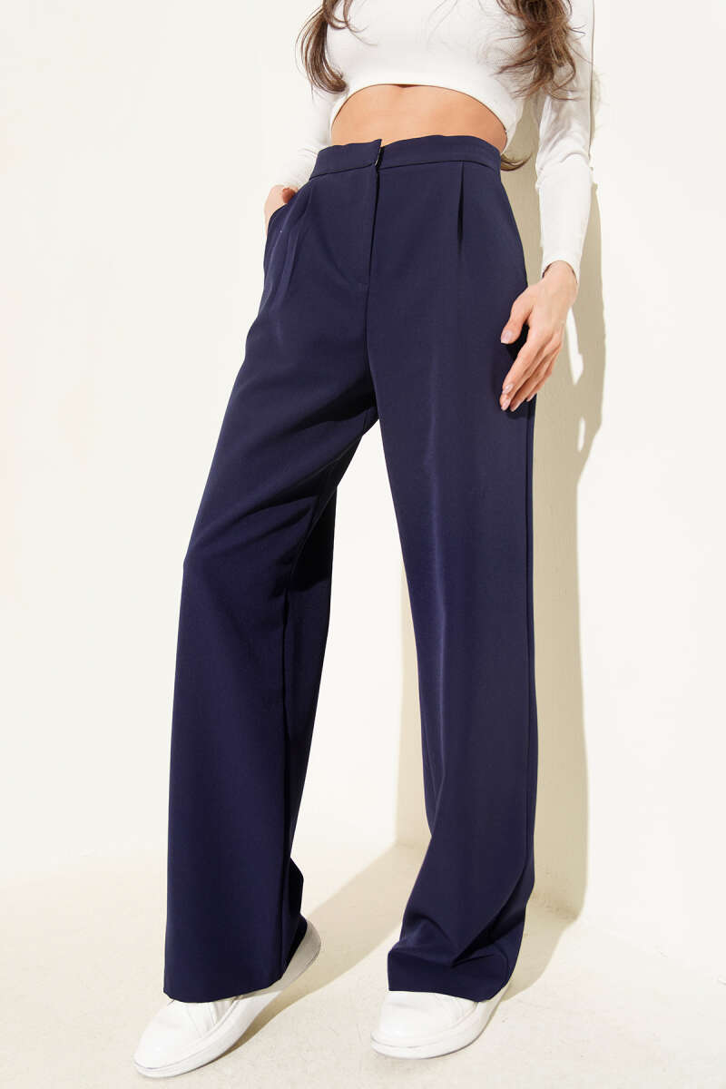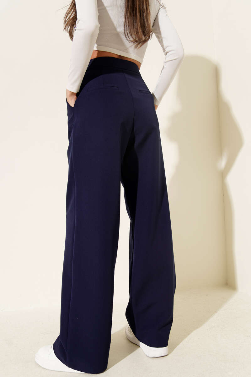 Bel Pensli Geniş Paça Pantolon Lacivert