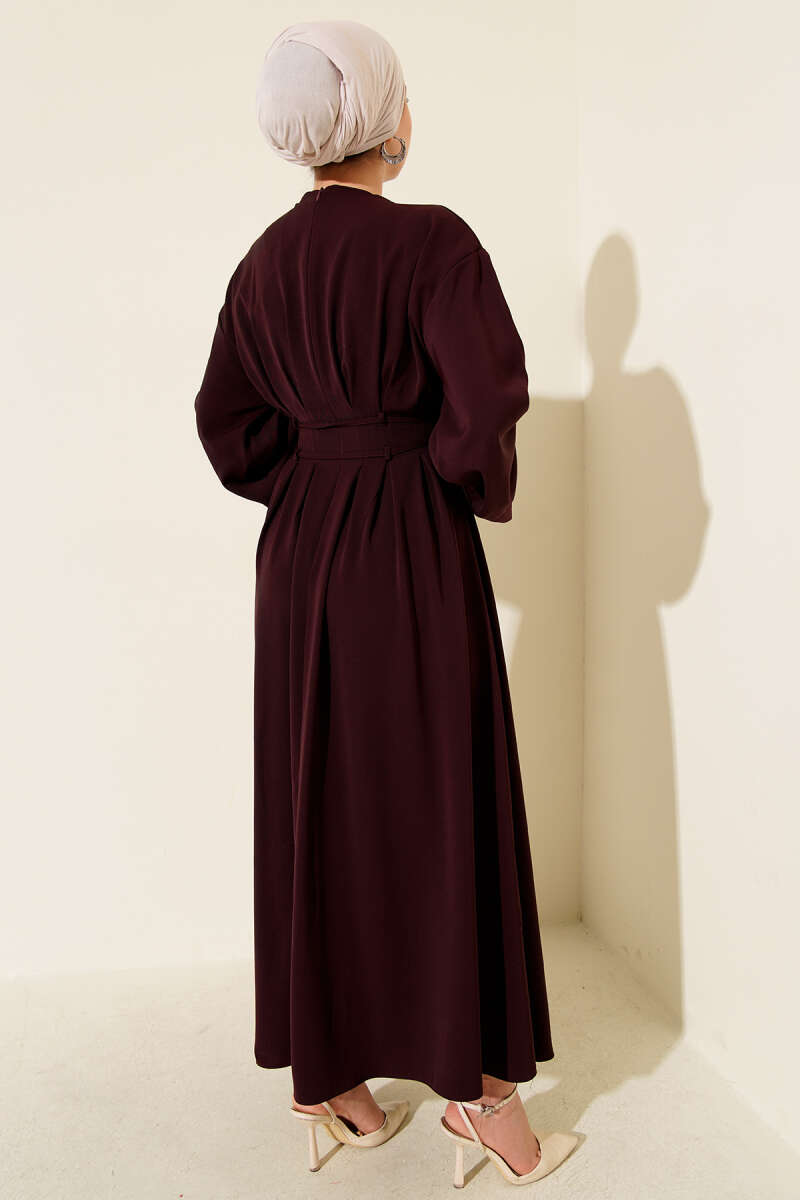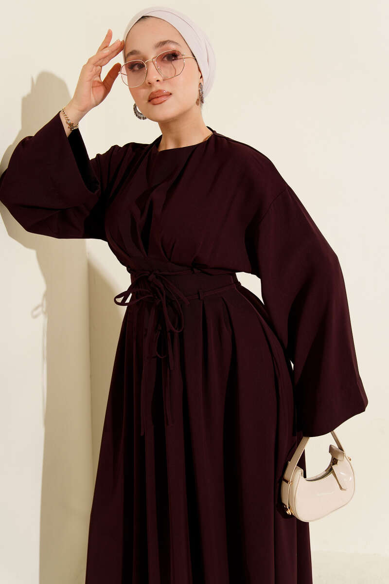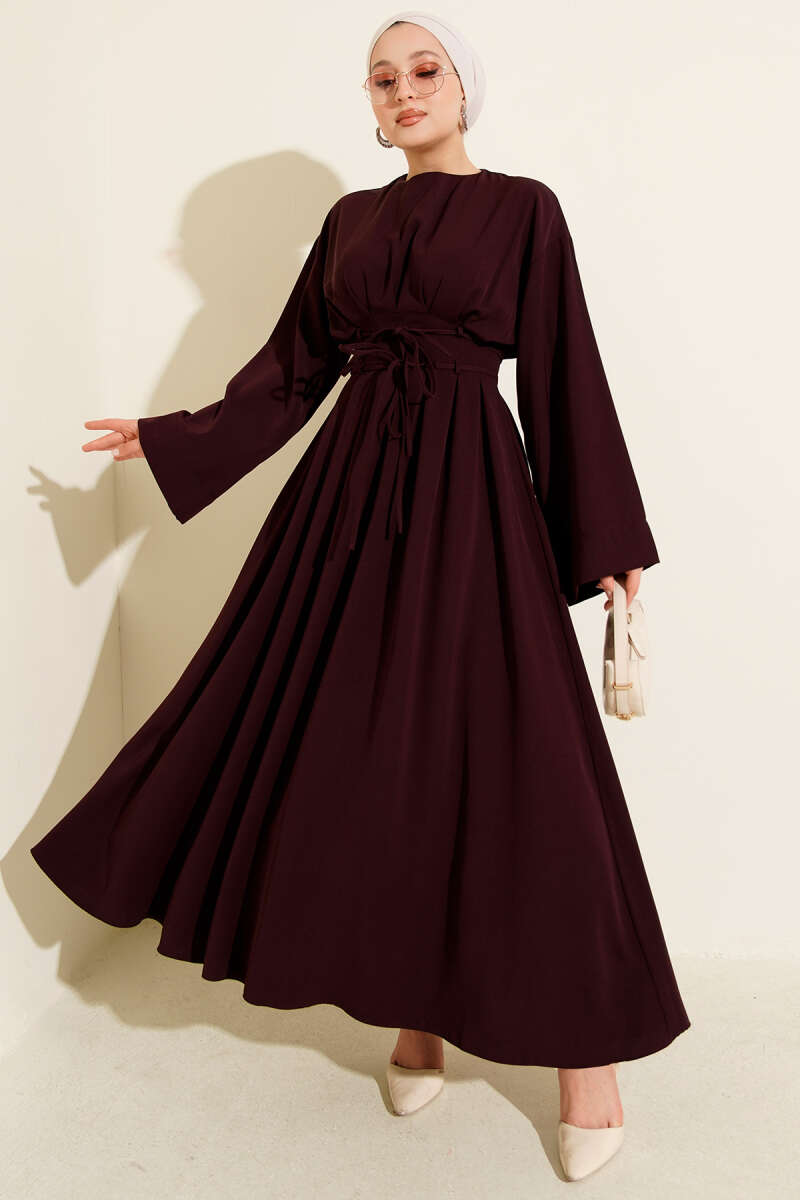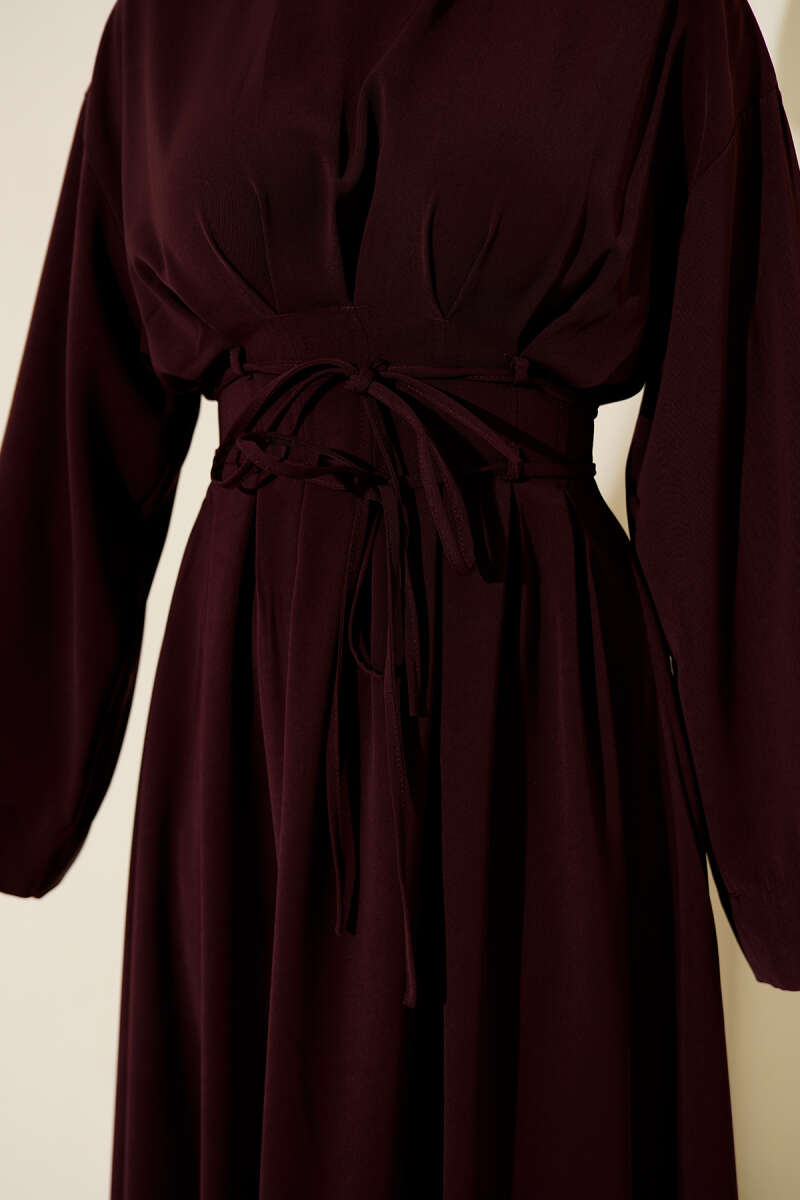 Bel Pensli İp Kuşaklı Elbise Bordo