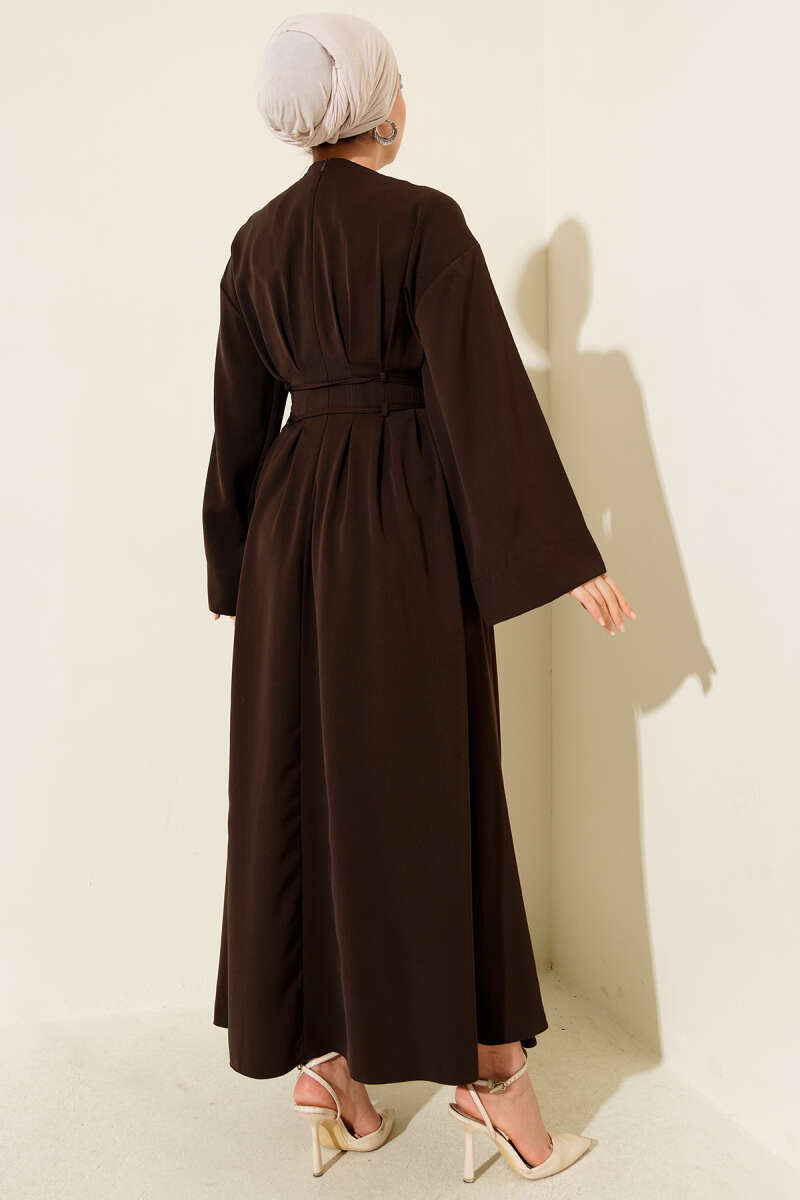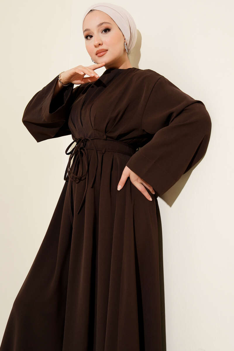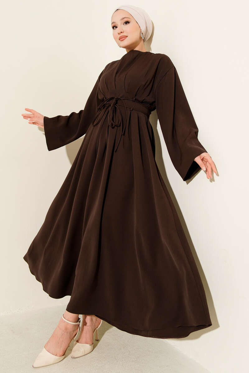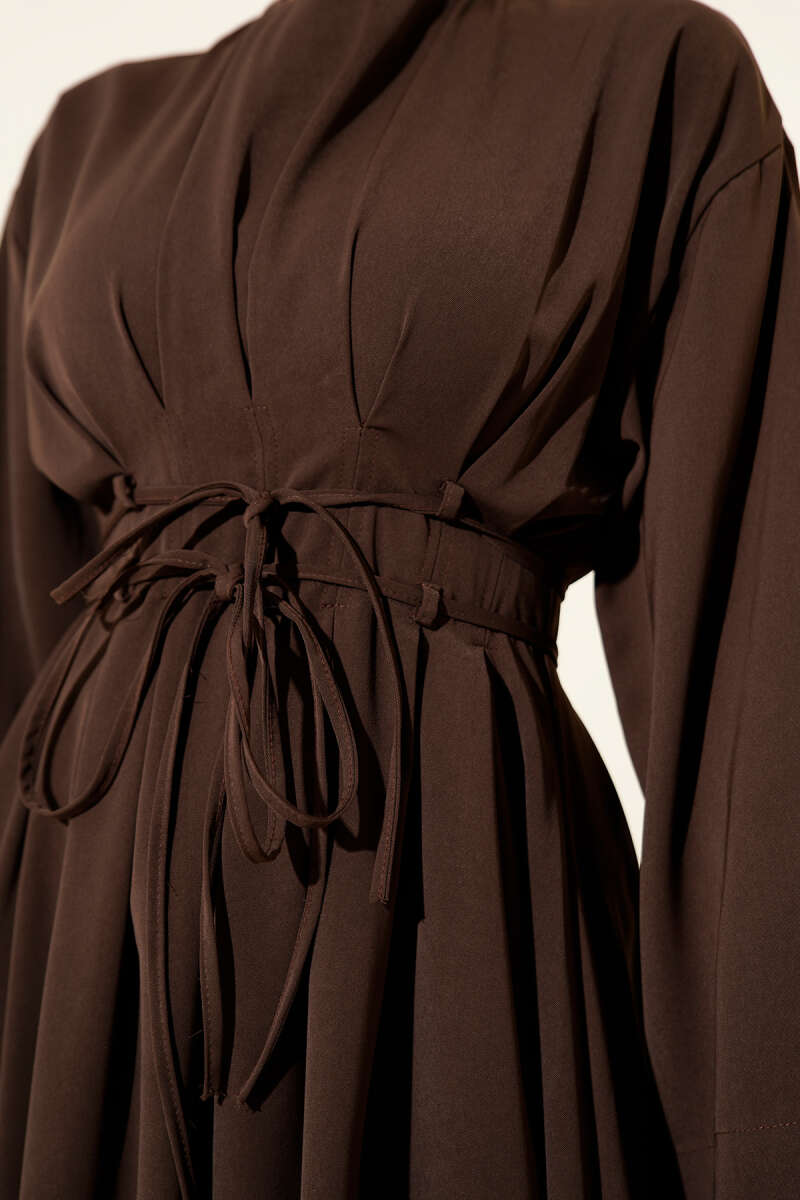 Bel Pensli İp Kuşaklı Elbise Kahve
