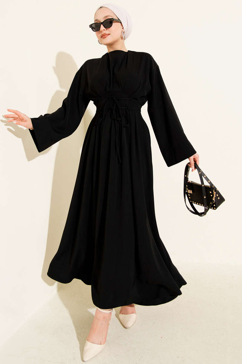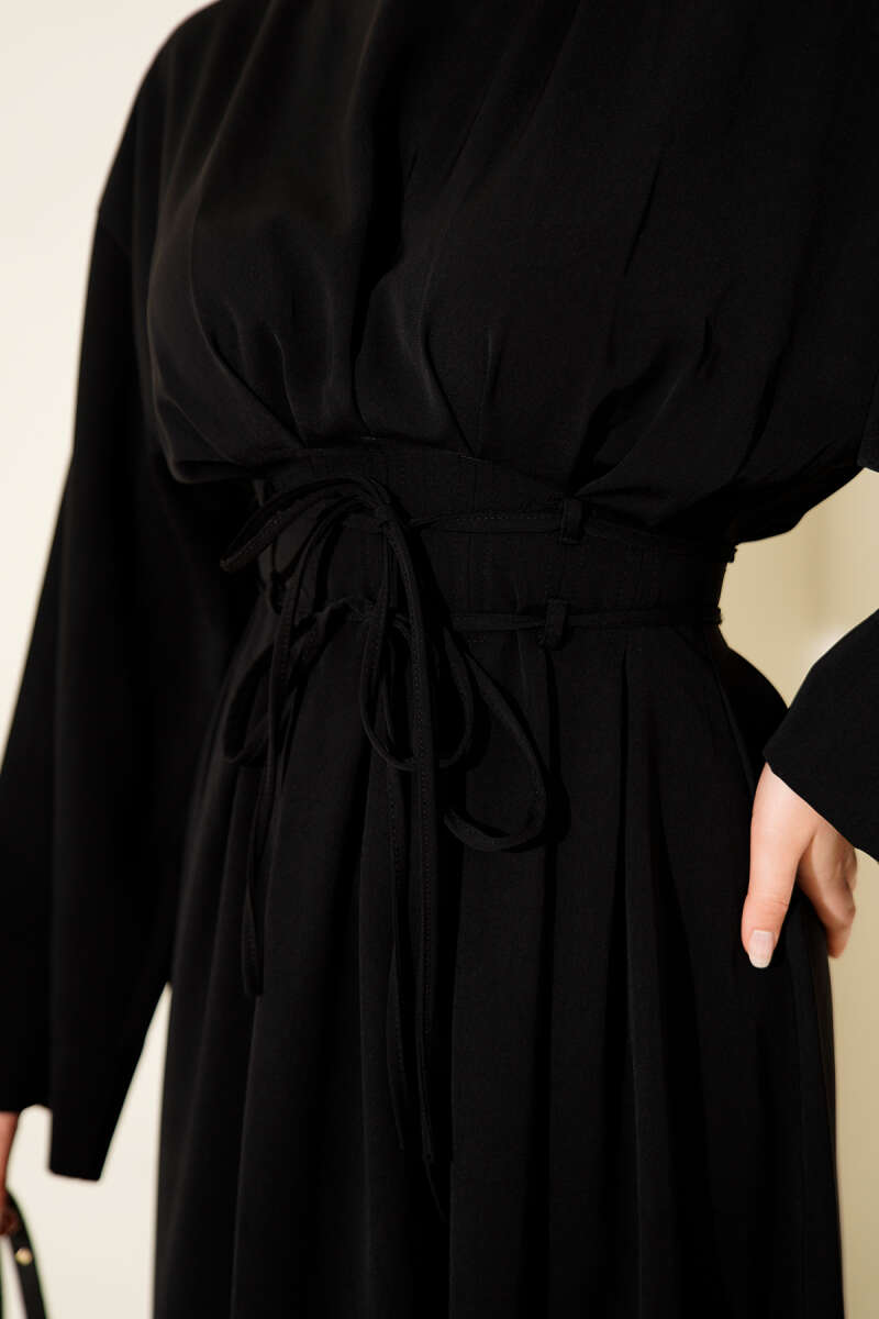 Bel Pensli İp Kuşaklı Elbise Siyah