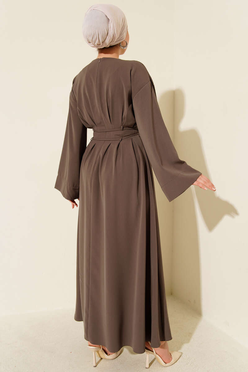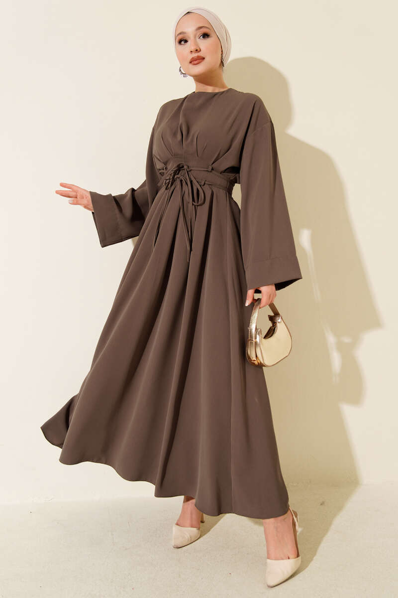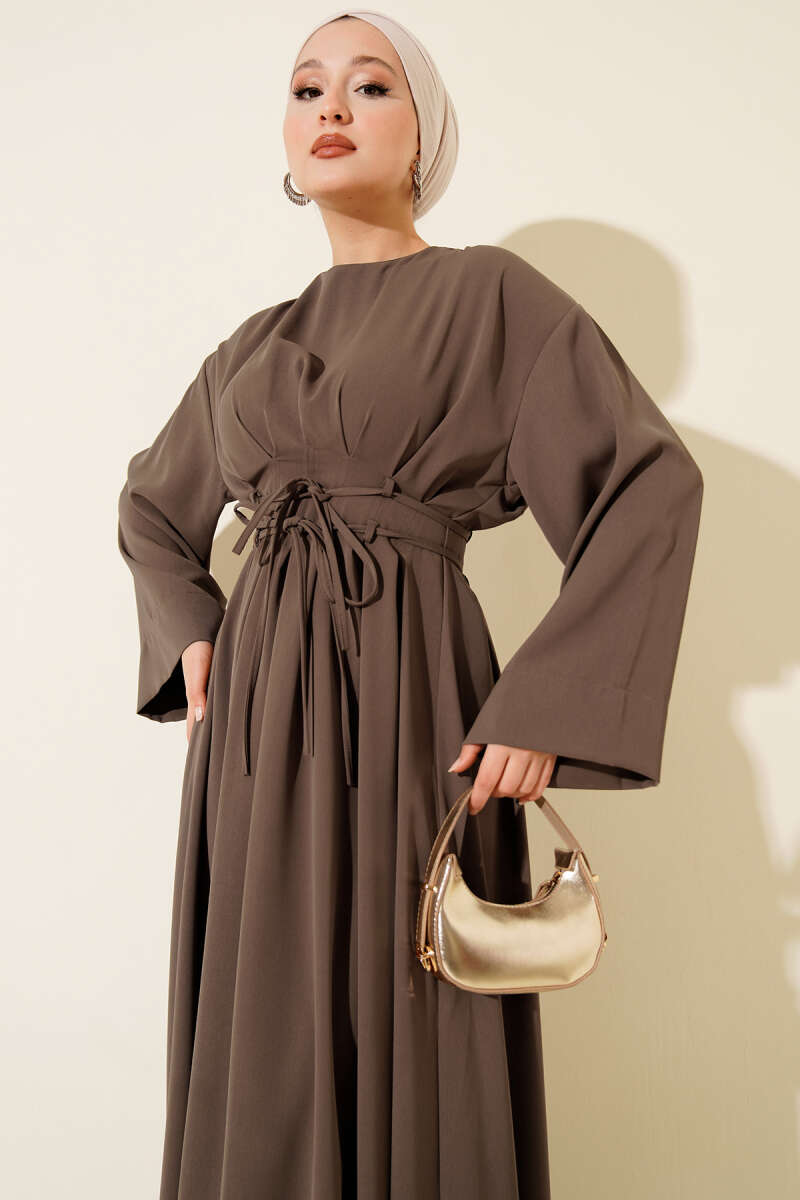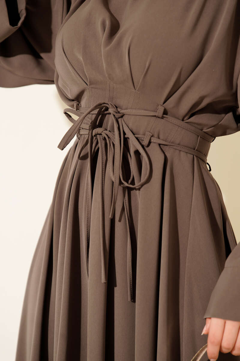Bel Pensli İp Kuşaklı Elbise Vizon