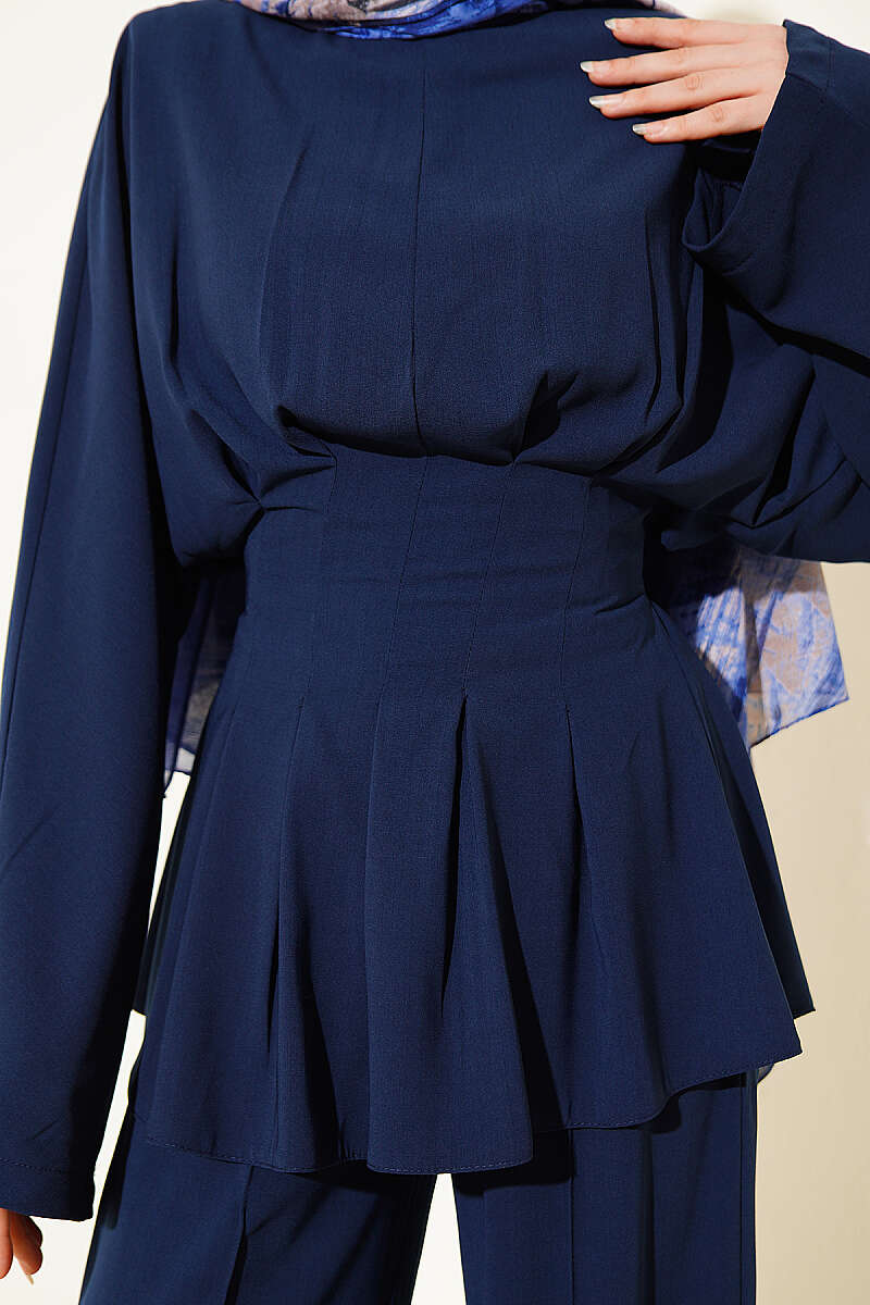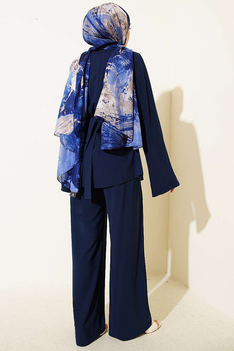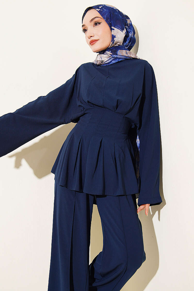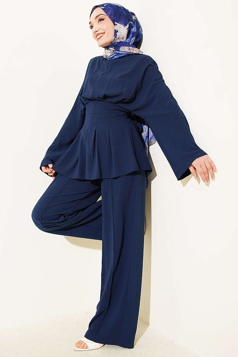 Bel Pensli Kendinden Kuşaklı Takım Lacivert
