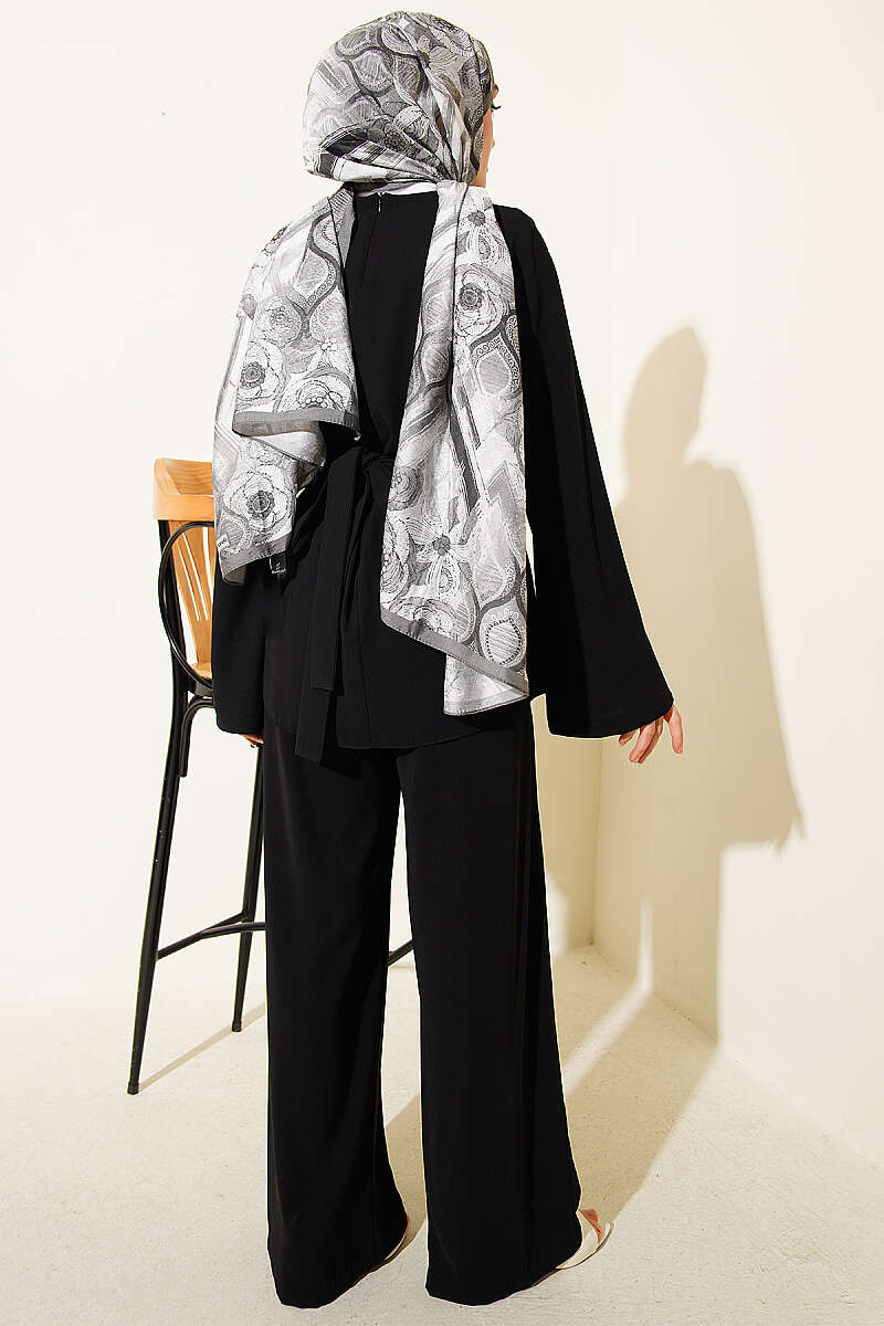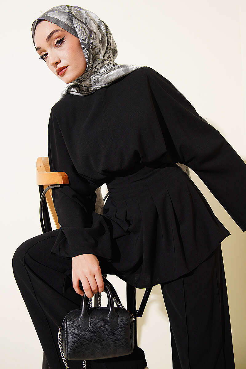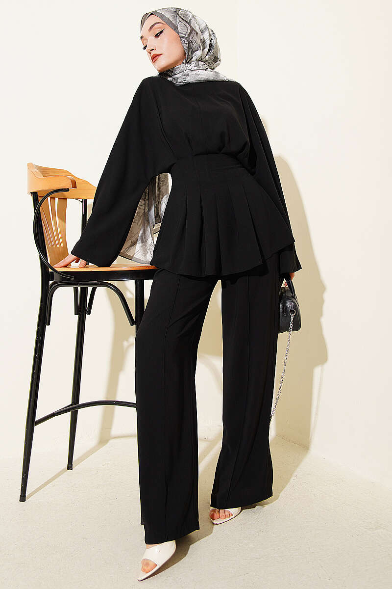 Bel Pensli Kendinden Kuşaklı Takım Siyah