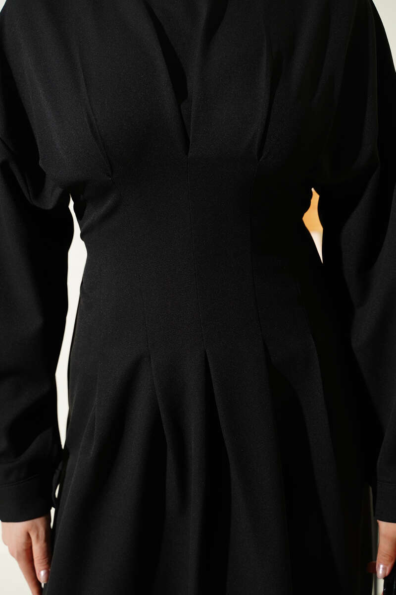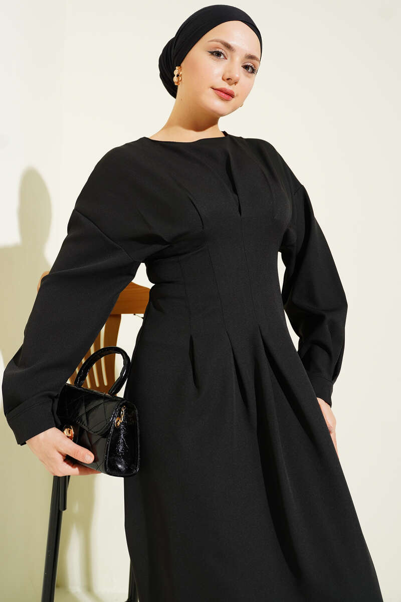 Bel Pensli Kuşaklı Dabıl Elbise Nefti