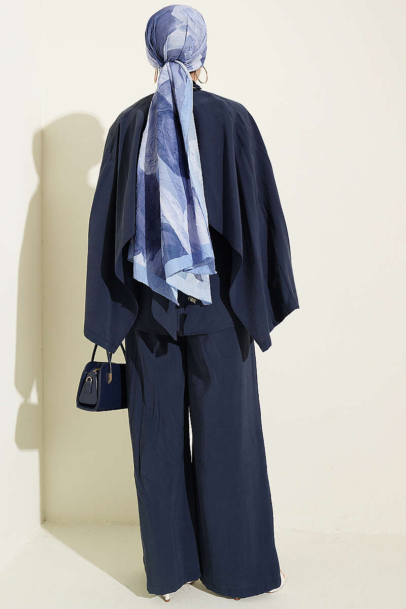 Taş Düğmeli Fularlı Modal İkili Takım Lacivert