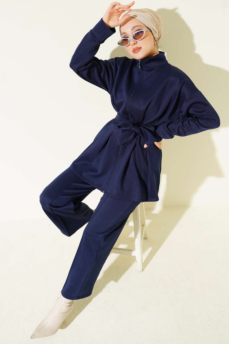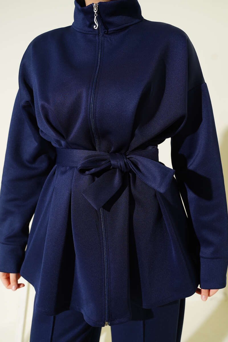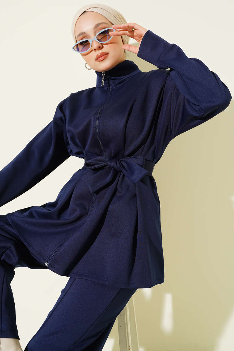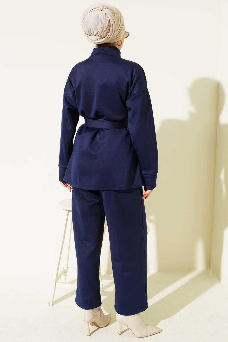 Bel Pensli Kuşaklı Scuba İkili Takım Kahve