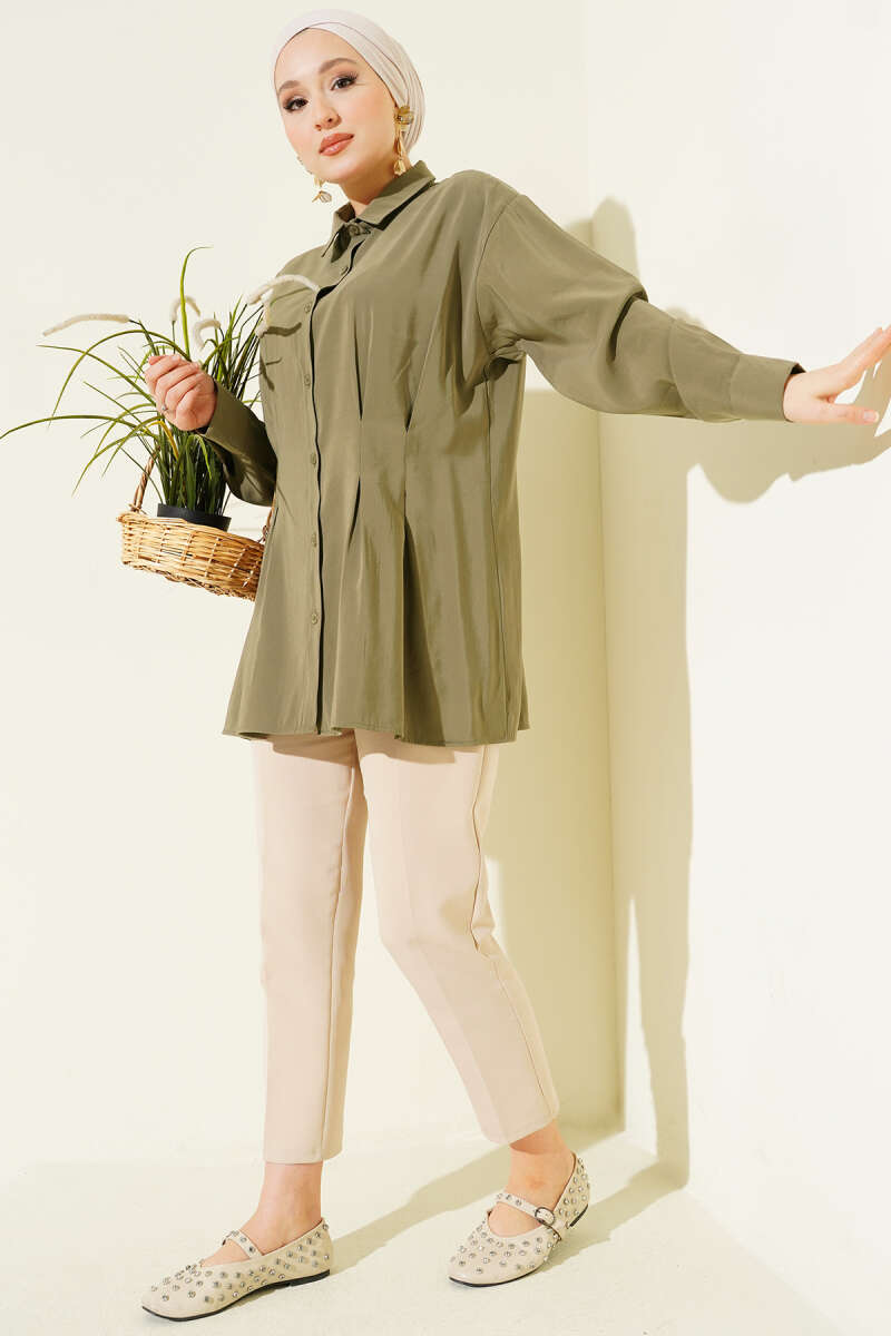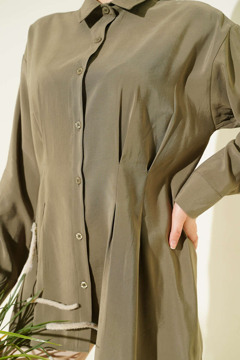 Bel Pensli Modal Gömlek Haki